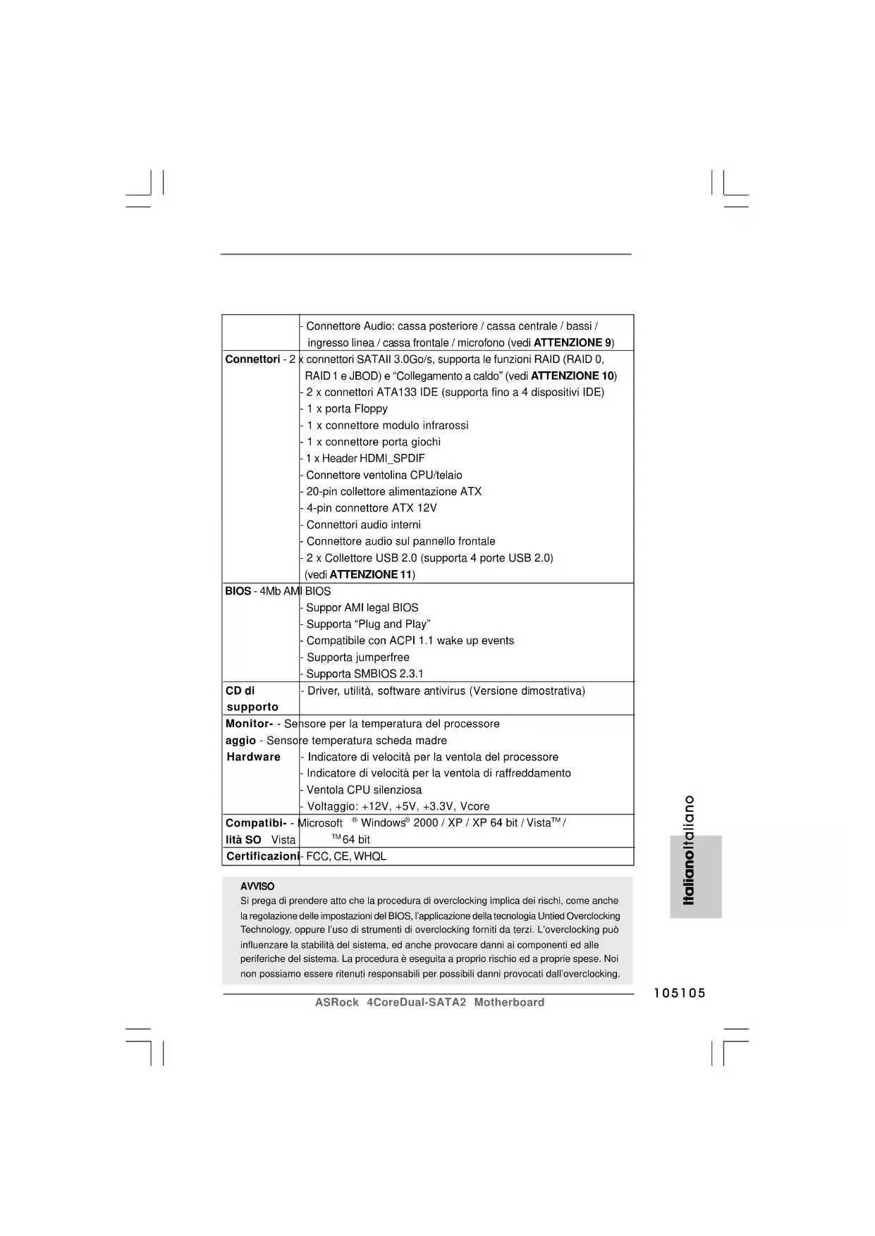 Guida di installazione rapida ASRock 4CoreDual-SATA2