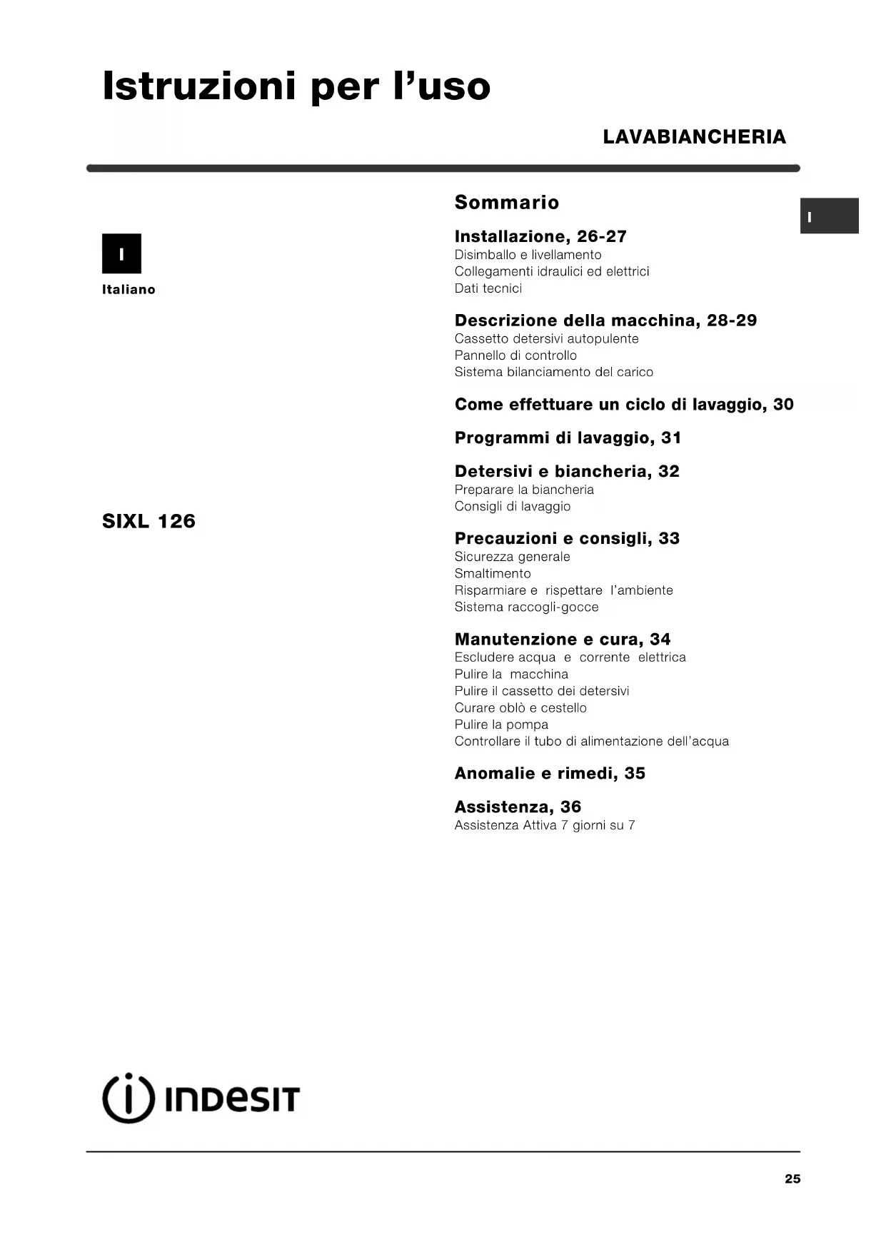 Moon Standard SIXL 126 - Lavatrice INDESIT - Manuale utente e istruzioni gratuiti