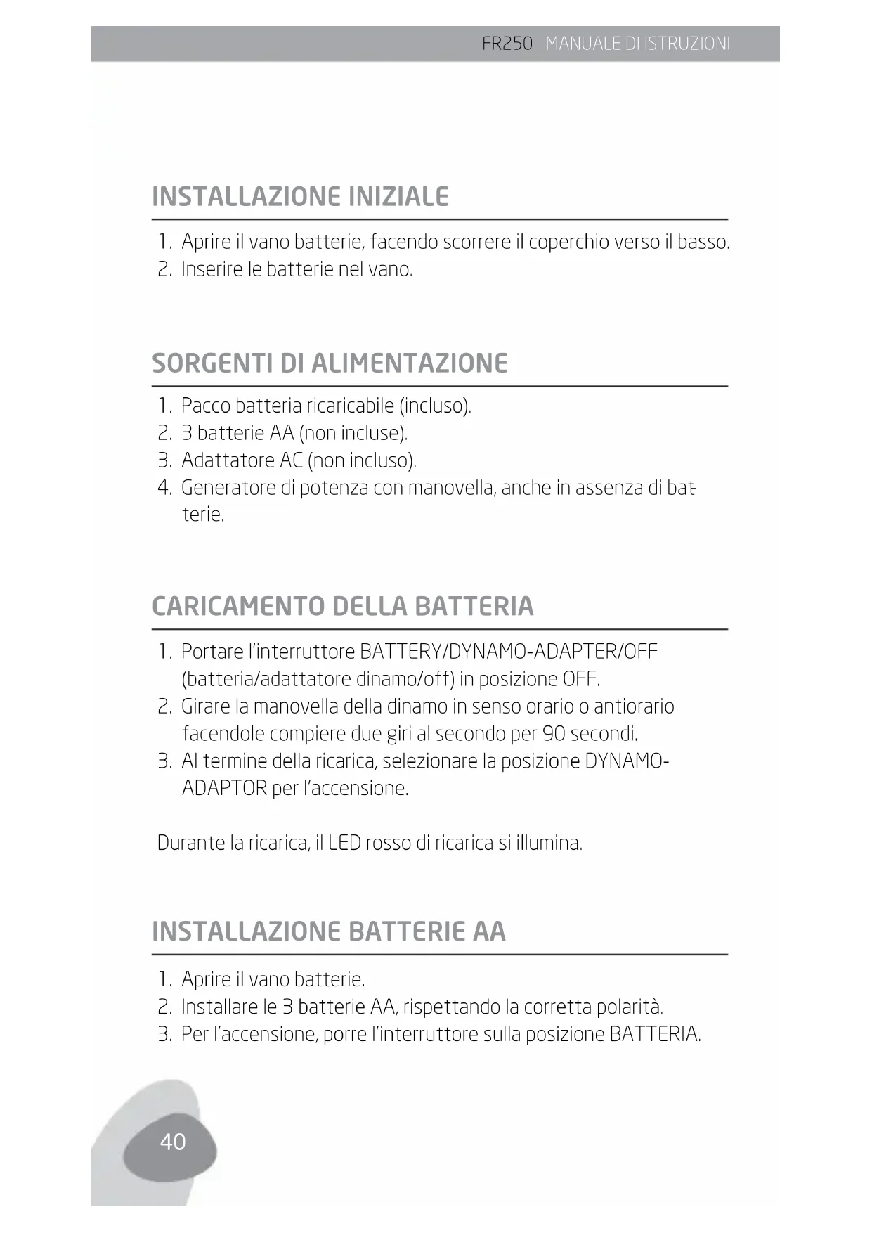 MANUALE UTENTE FR250 ETON