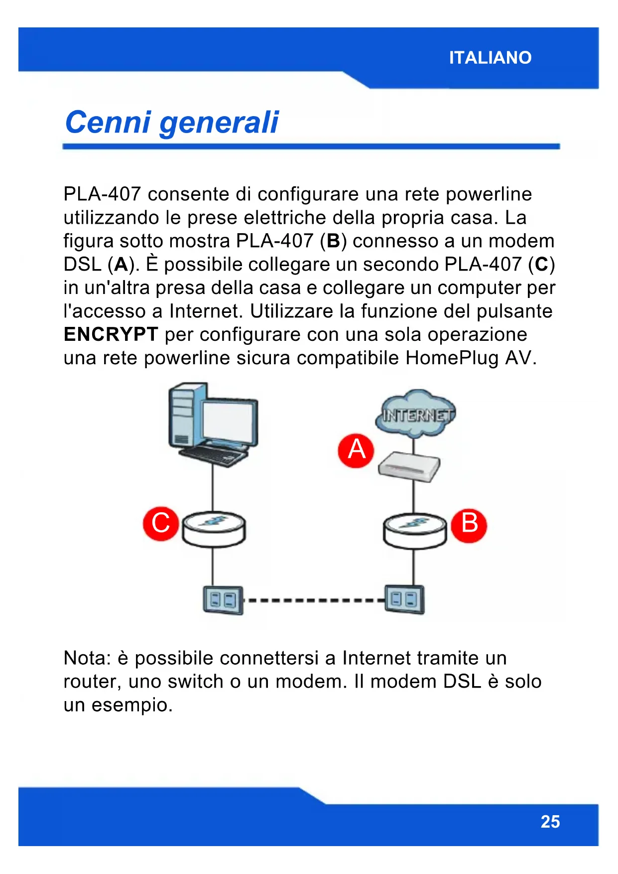 1. Collegamento di PLA-407 a un modem o router via