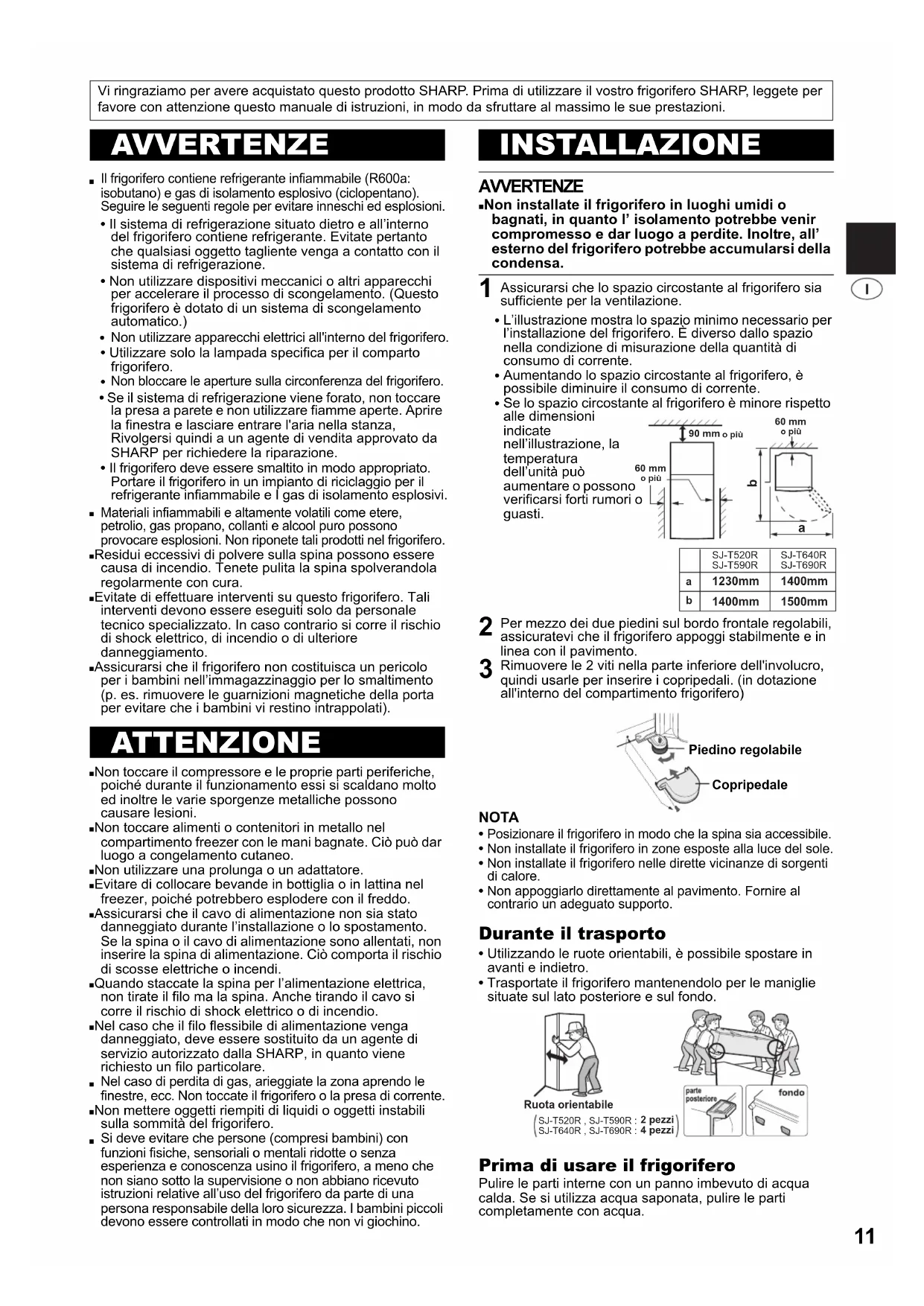 Vi ringraziamo per avere acquistato questo prodotto SHARP. Prima di utilizzare il vostro frigorifero SHARP, leggete per