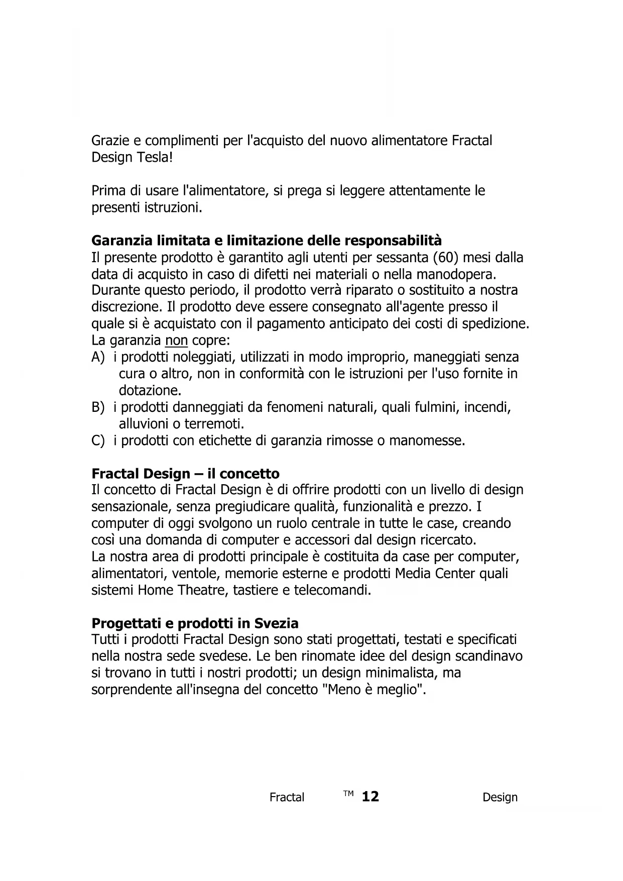 Grazie e complimenti per l'acquisto del nuovo alimentatore Fractal Design Tesla!