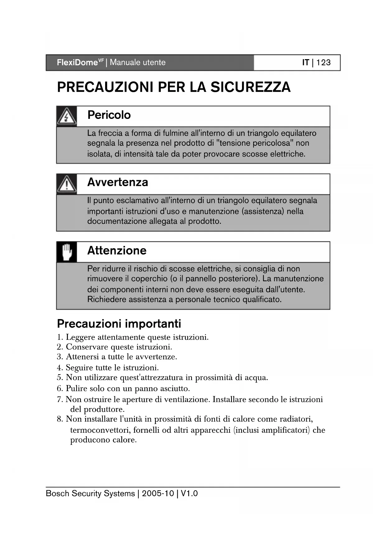 PRECAUZIONI PER LA SICUREZZA Precauzioni importanti