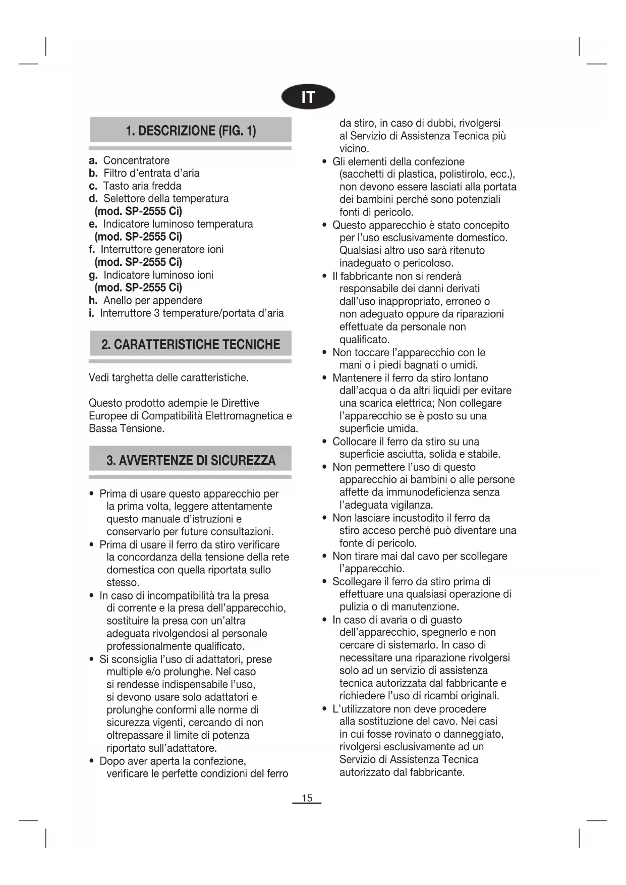 MANUALE UTENTE SP2555 CI FAGOR
