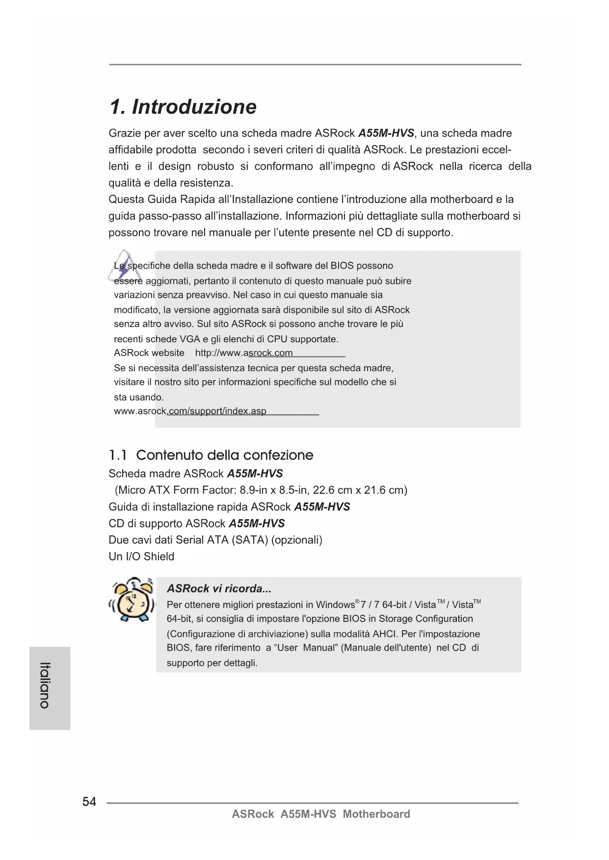 Grazie per aver scelto una scheda madre ASRock A55M-HVS, una scheda madre