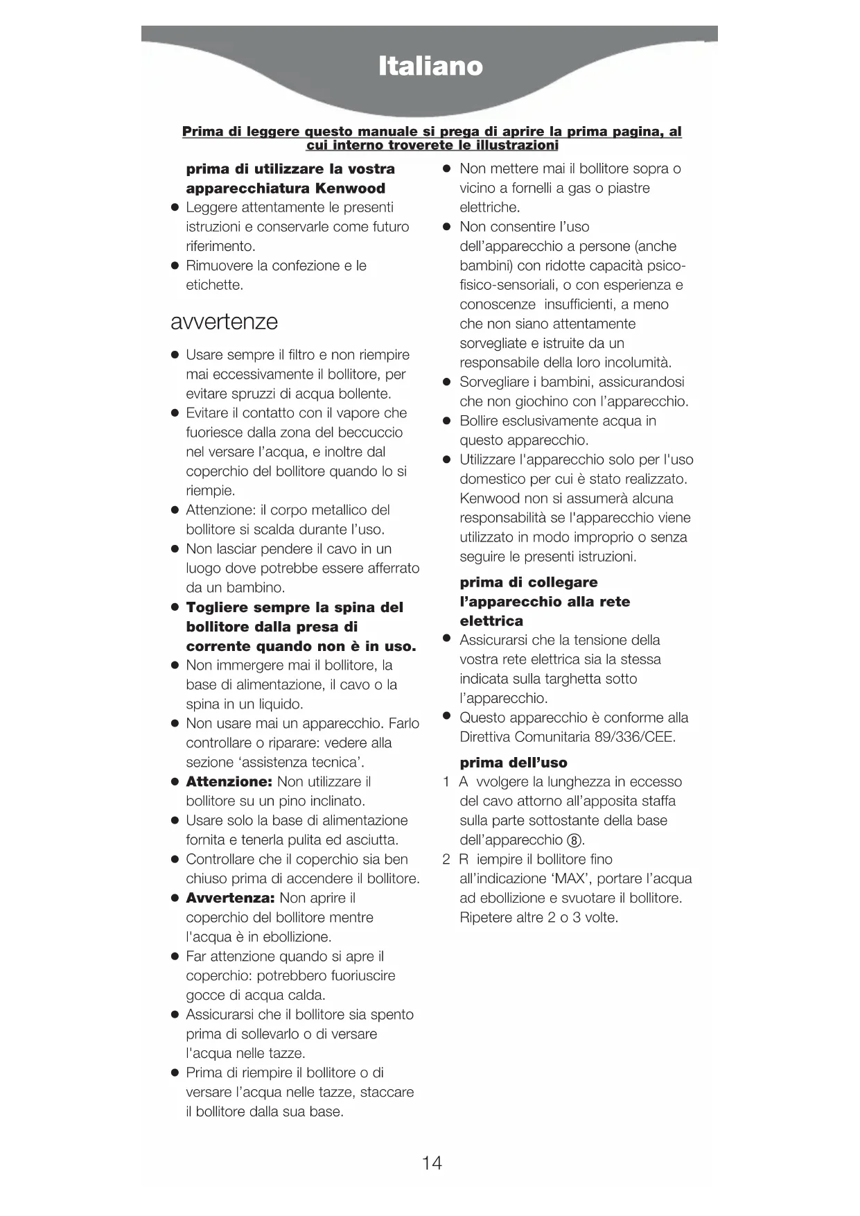 SJM250 - Bollitore KENWOOD - Manuale utente e istruzioni gratuiti
