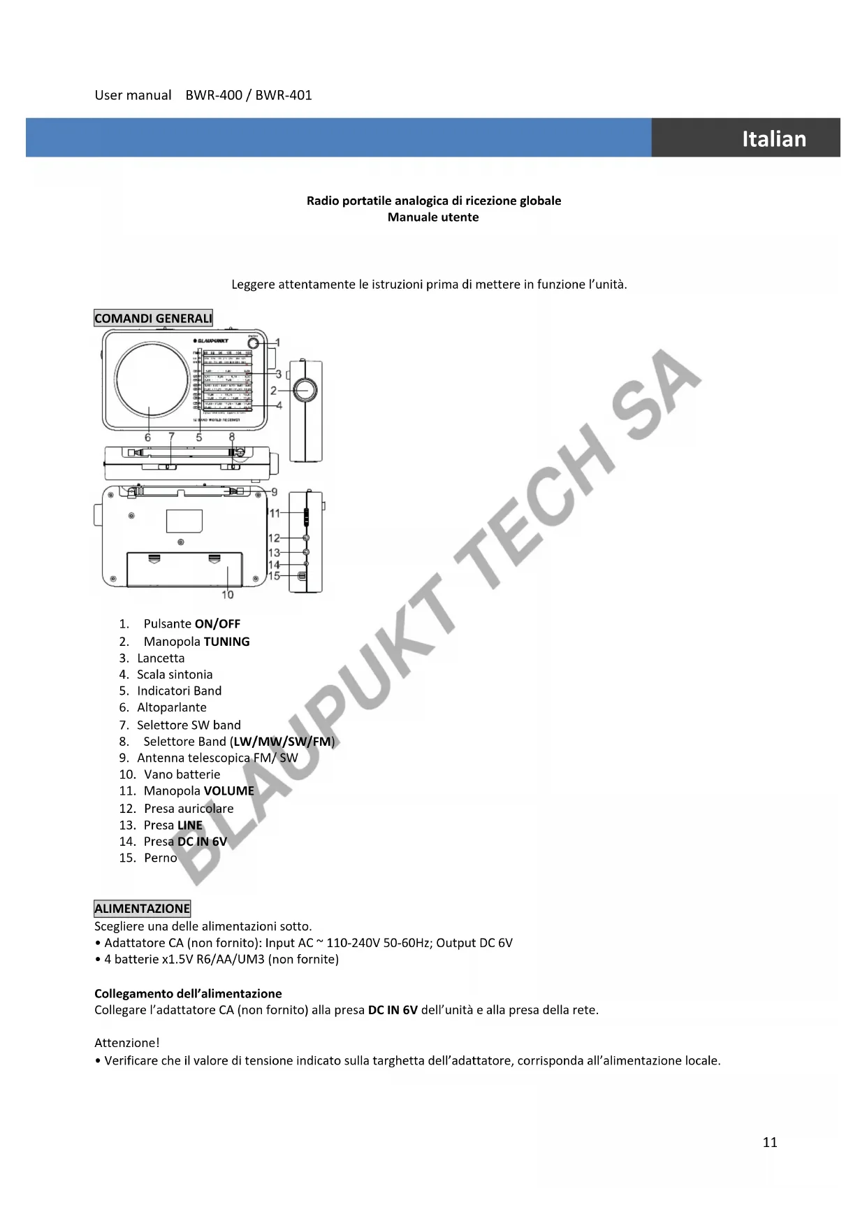BWR400 - Radio BLAUPUNKT - Manuale utente e istruzioni gratuiti