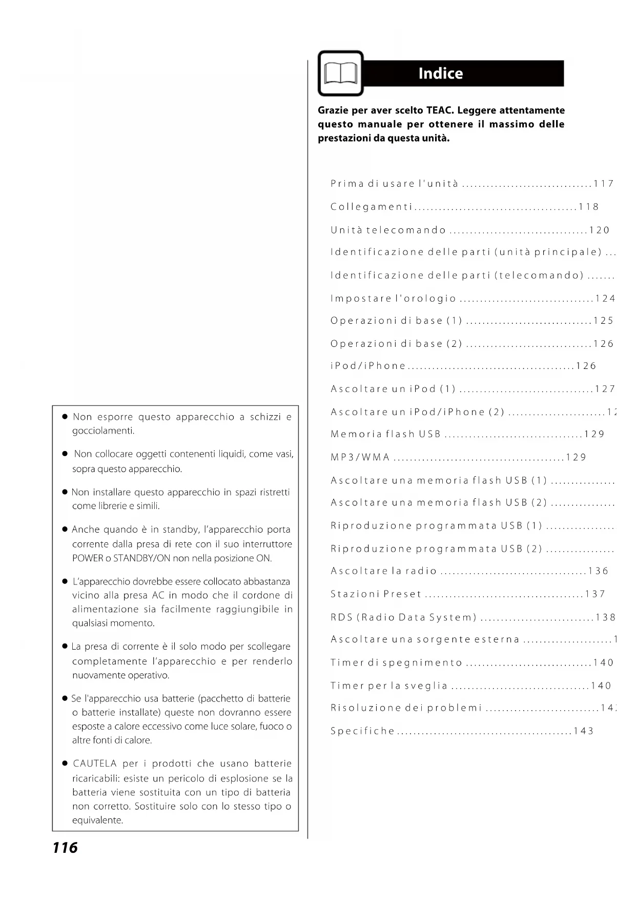 Scarica le istruzioni per il tuo Station d'acceuil in formato PDF gratuitamente! Trova il tuo manuale SR80i - TEAC e riprendi in mano il tuo dispositivo elettronico. In questa pagina sono pubblicati tutti i documenti necessari per l'utilizzo del tuo dispositivo. SR80i del marchio TEAC.