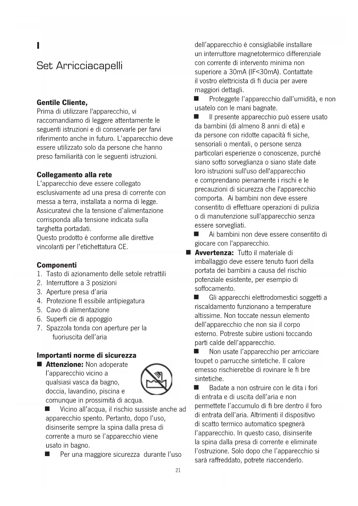 Non usate l’apparecchio per arricciare