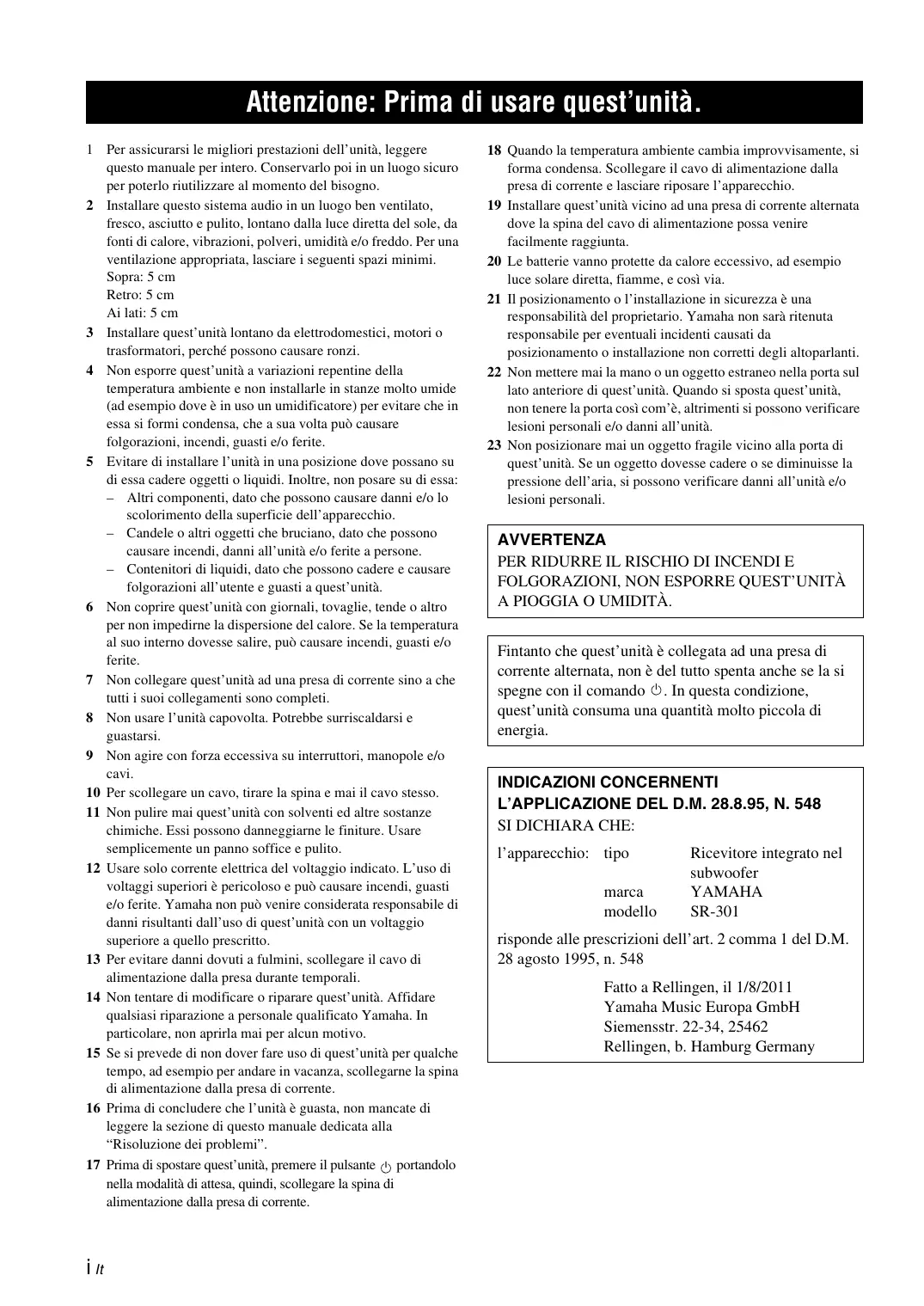 MANUALE UTENTE YHT-S401 YAMAHA