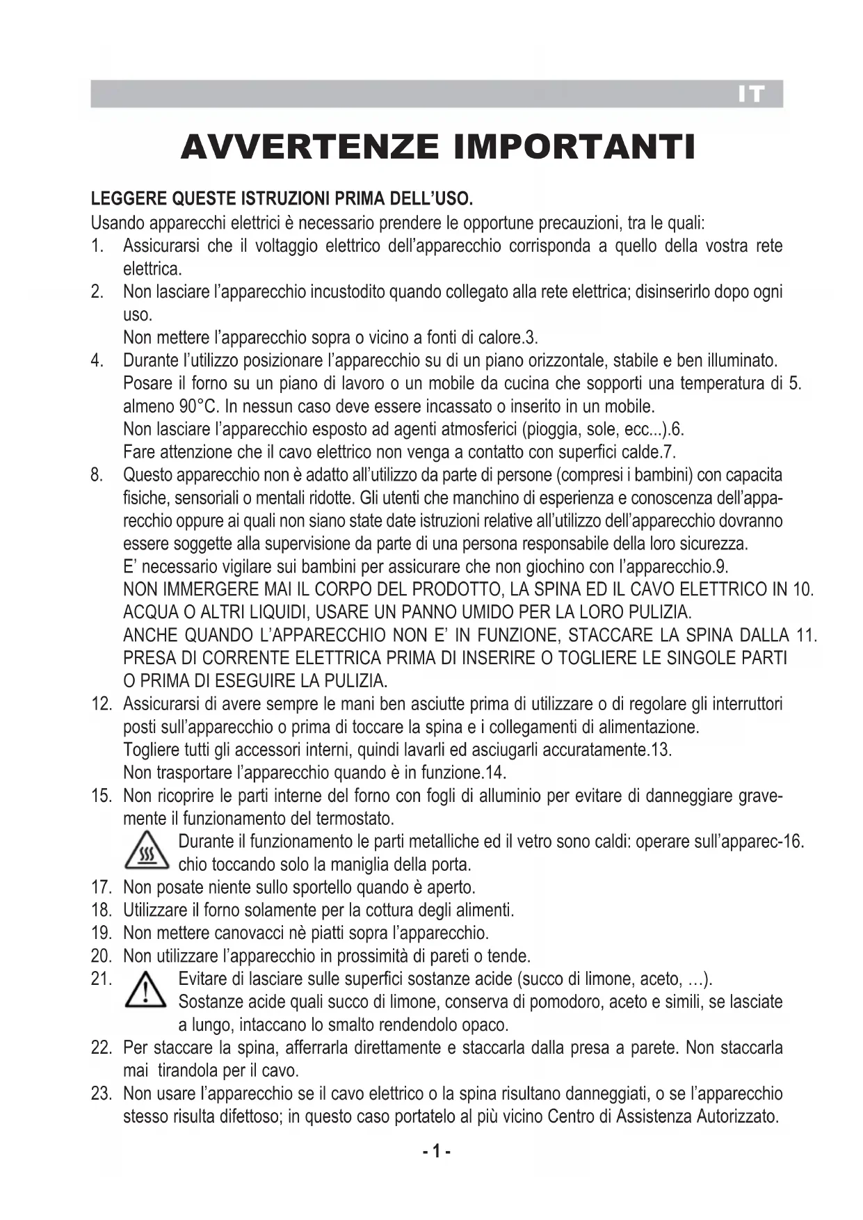 AVVERTENZE IMPORTANTI LEGGERE QUESTE ISTRUZIONI PRIMA DELL’USO.