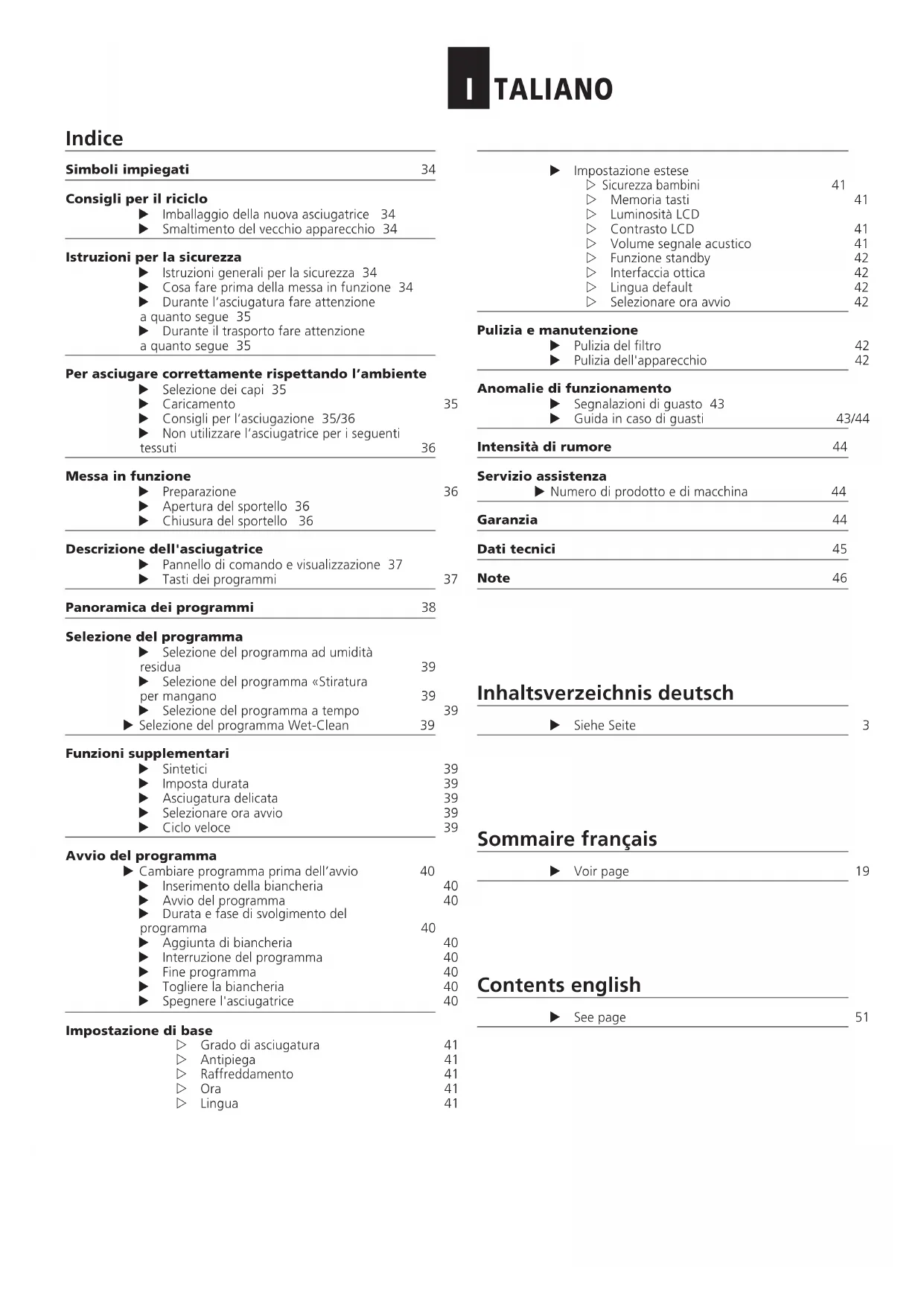 Selezione del programma ad umidita residua 39