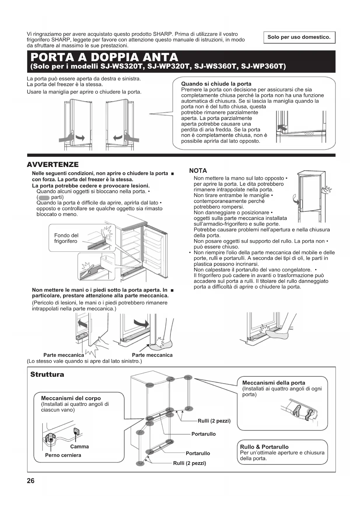 frigorifero SHARP, leggete per favore con attenzione questo manuale di istruzioni, in modo