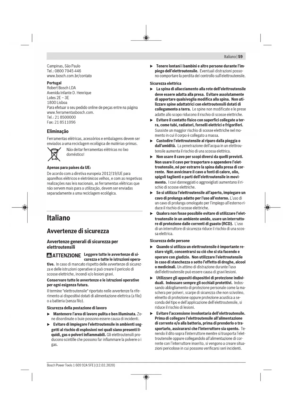 zioni pericolose in cui possono verificarsi seri incidenti. Bosch Power Tools 1 609 92A 5FE | (12.02.2020)60 | Italiano