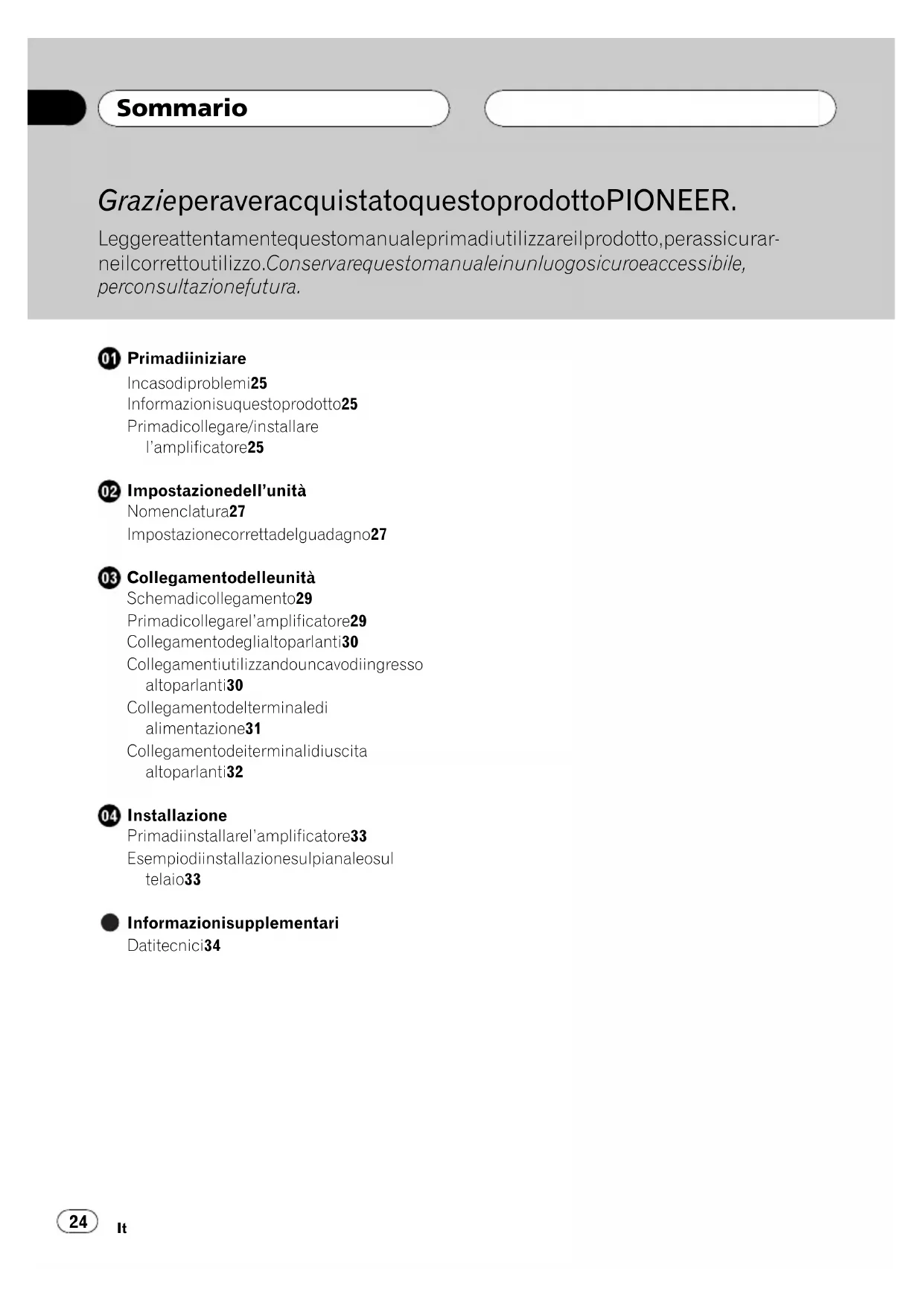 23 Annexe FrançaisGrazie per aver acquistato questo prodotto PIONEER.