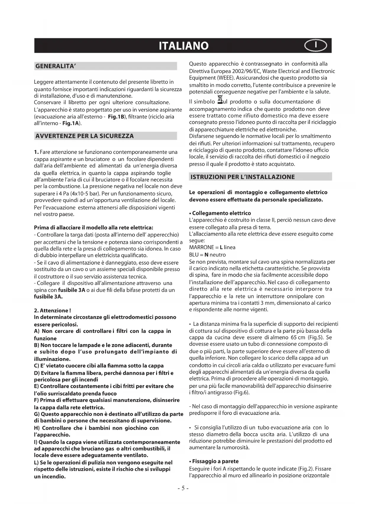 CAPPA ASPIRANTE - Istruzioni per l’uso