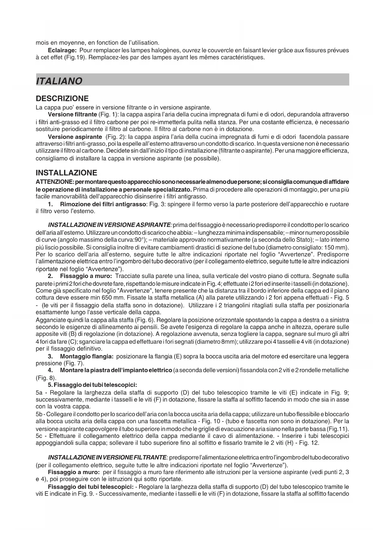 ITALIANO DESCRIZIONE La cappa puo’ essere in versione filtrante o in versione aspirante.