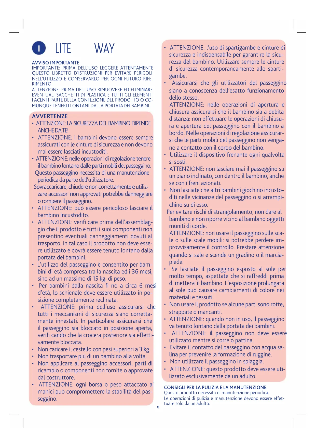 • ATTENZIONE: non lasciare mai il passeggino su