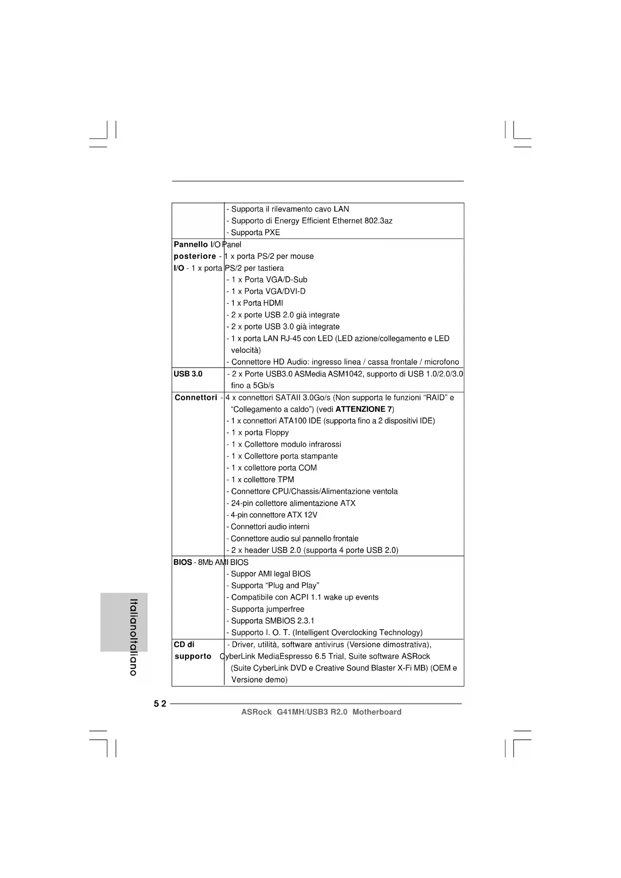 MANUALE UTENTE G41MHUSB3 R2.0 ASROCK