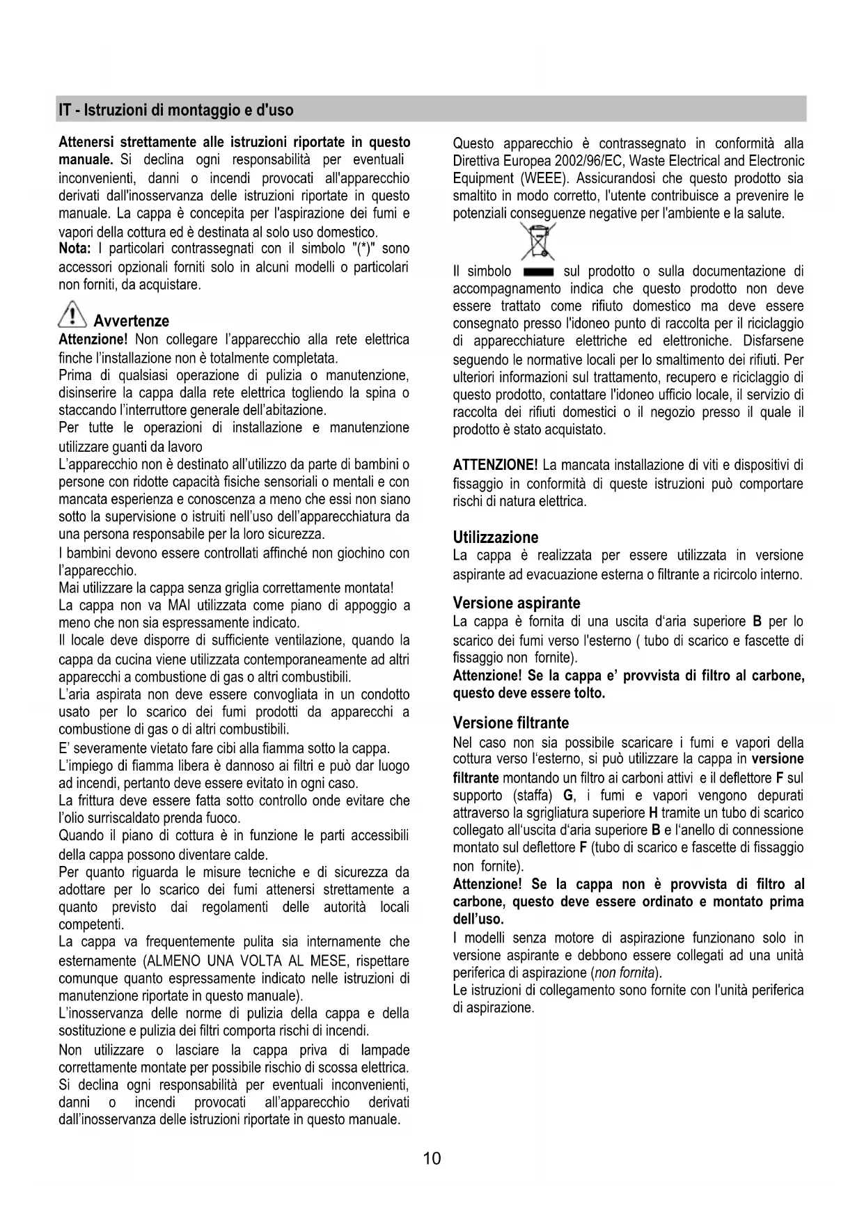 manuale. La cappa è concepita per l'aspirazione dei fumi e