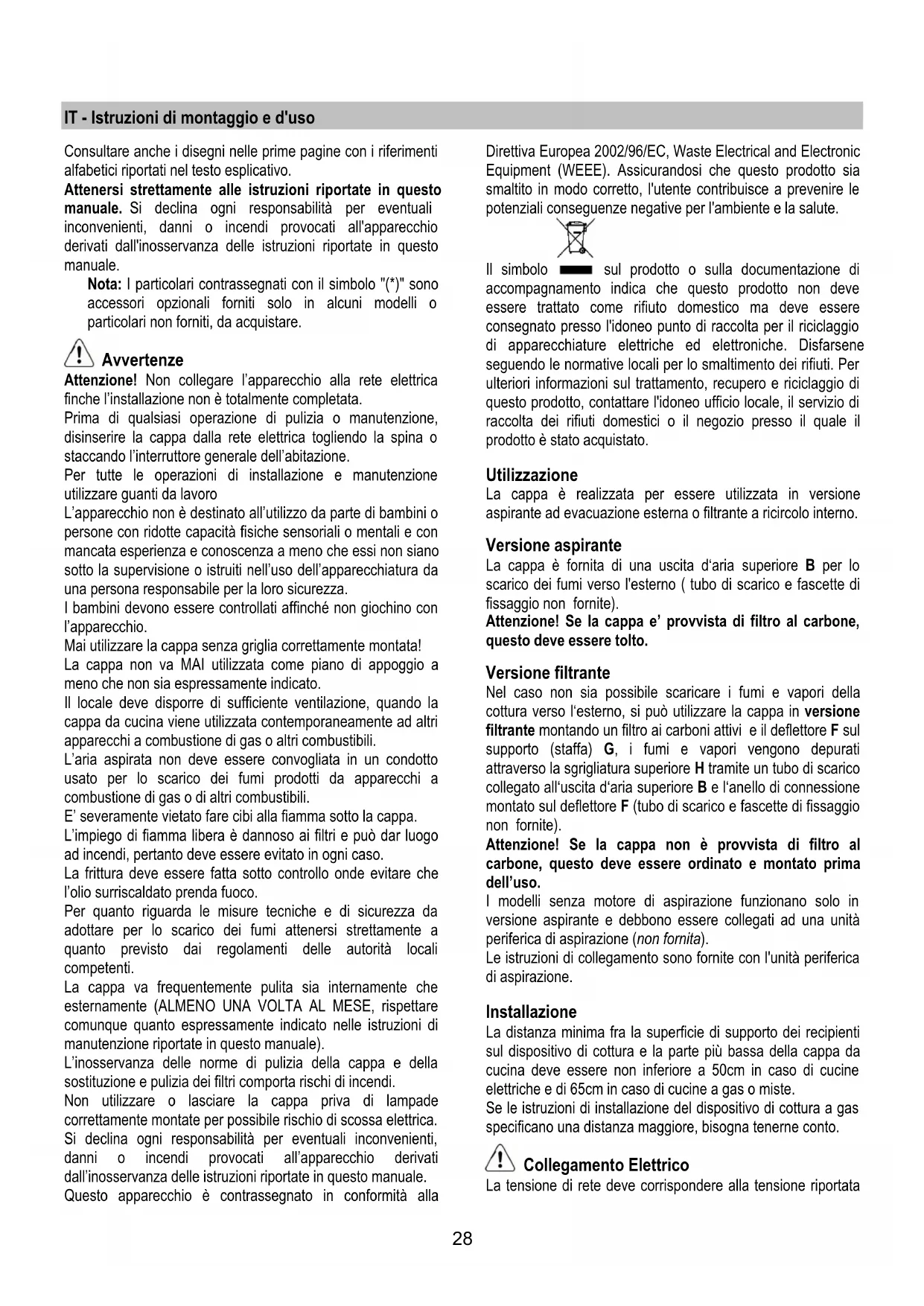 Attenzione! Se la cappa e’ provvista di filtro al carbone,
