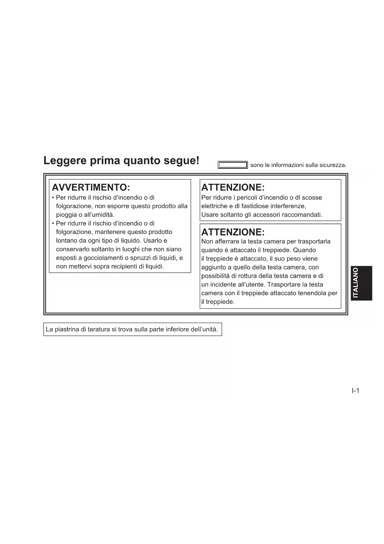 sono le informazioni sulla sicurezza.ITALIANO AVVISO EMC PER L’ACQUIRENTE/UTENTE DELL’APPARATO
