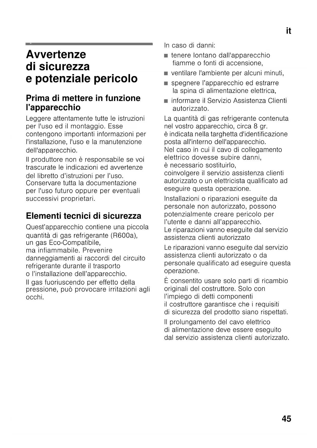 Avvertenze di sicurezza e