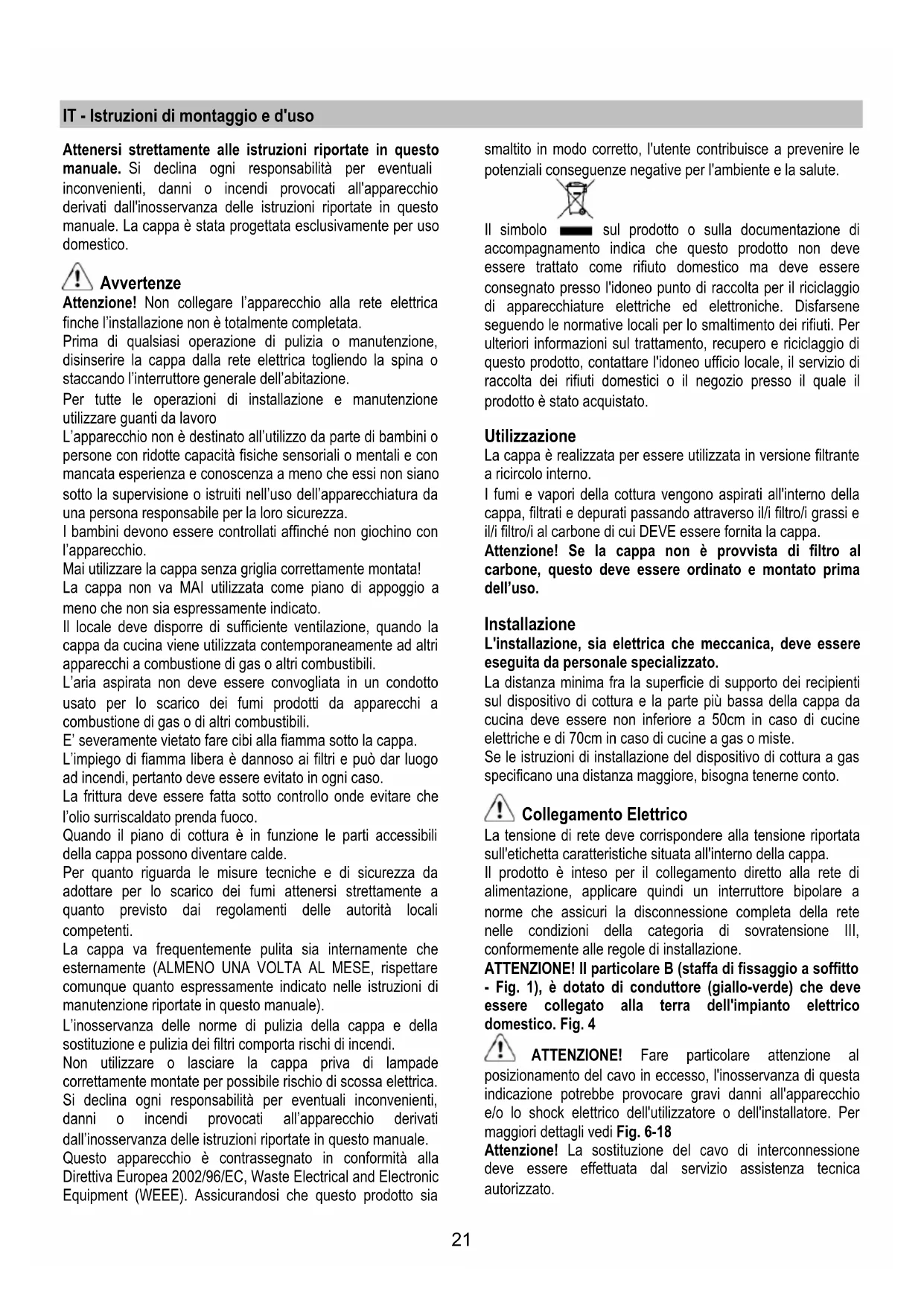 manuale. La cappa è stata progettata esclusivamente per uso