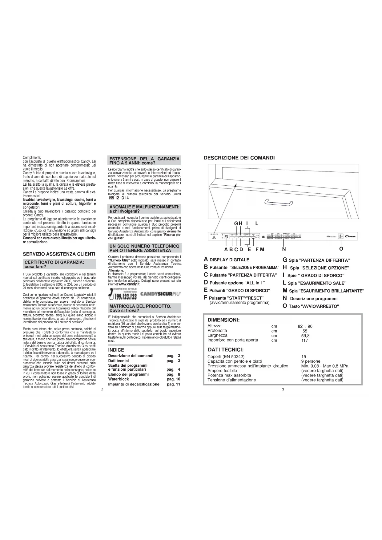 UN SOLO NUMERO TELEFONICO PER OTTENERE ASSISTENZA Qualora il problema dovesse persistere, componendo il“Numero Utile” sotto indicato, sarà messo in contattodirettamente con il Servizio Assistenza TecnicaAutorizzato che opera nella Sua zona di residenza.Attenzione:la chiamata è a pagamento; il costo verrà comunicato,tramite messaggio vocale, dal Servizio clienti dell’opera-tore telefonico utilizzato. Dettagli sono presenti sul sitointernet www.candy.it. MATRICOLA DEL PRODOTTO.