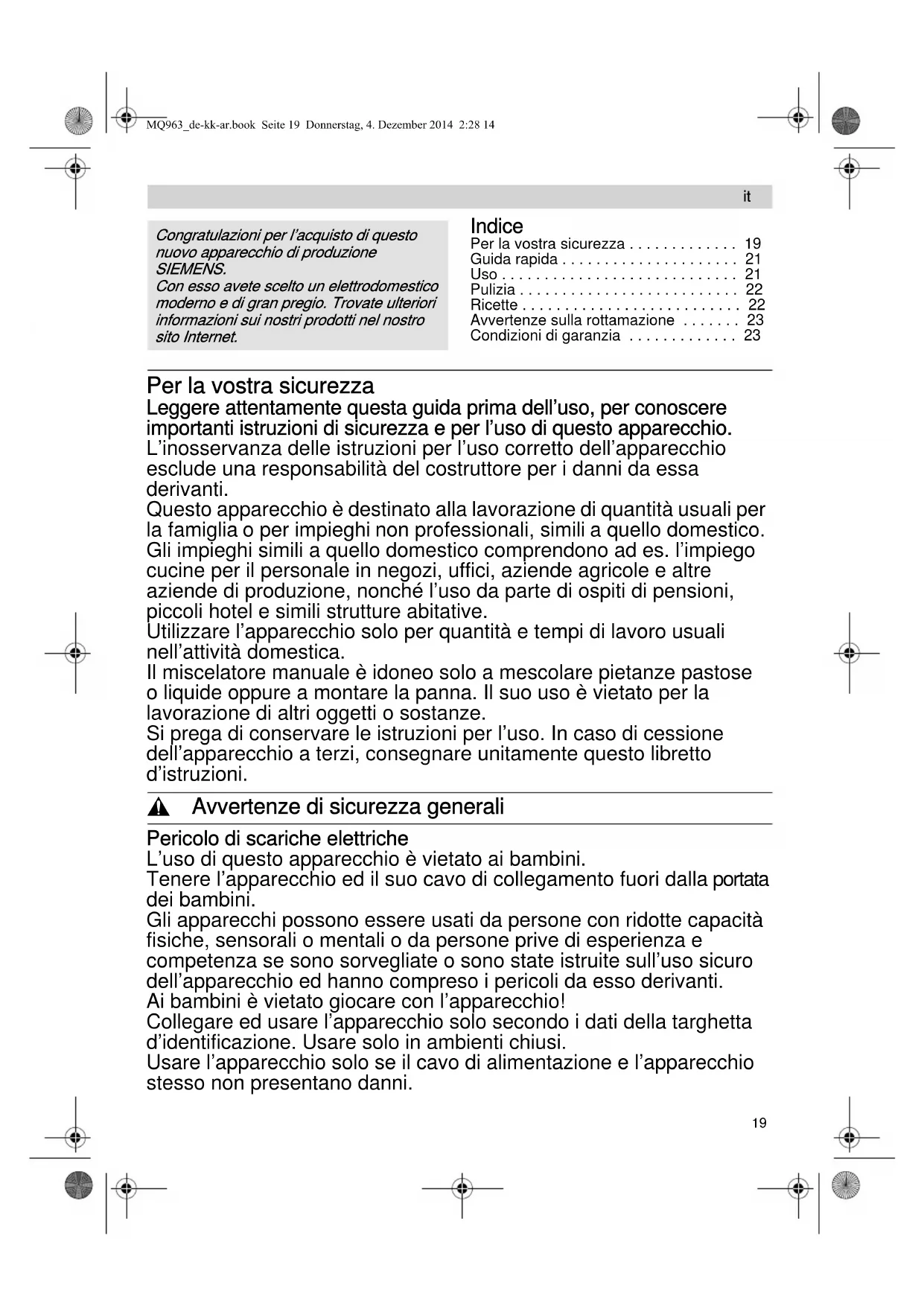 sito Internet. MQ963_de-kk-ar.book Seite 19 Donnerstag, 4. Dezember 2014 2:28 1420 5.960-552 A XXXXX (02/03)