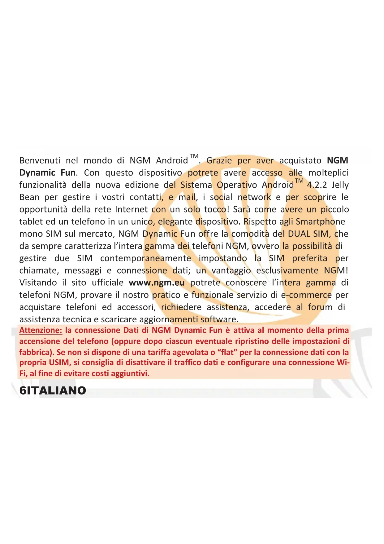 . Grazie per aver acquistato NGM Dynamic Fun. Con questo dispositivo potrete avere accesso alle molteplici funzionalità della nuova edizione del Sistema Operativo Android