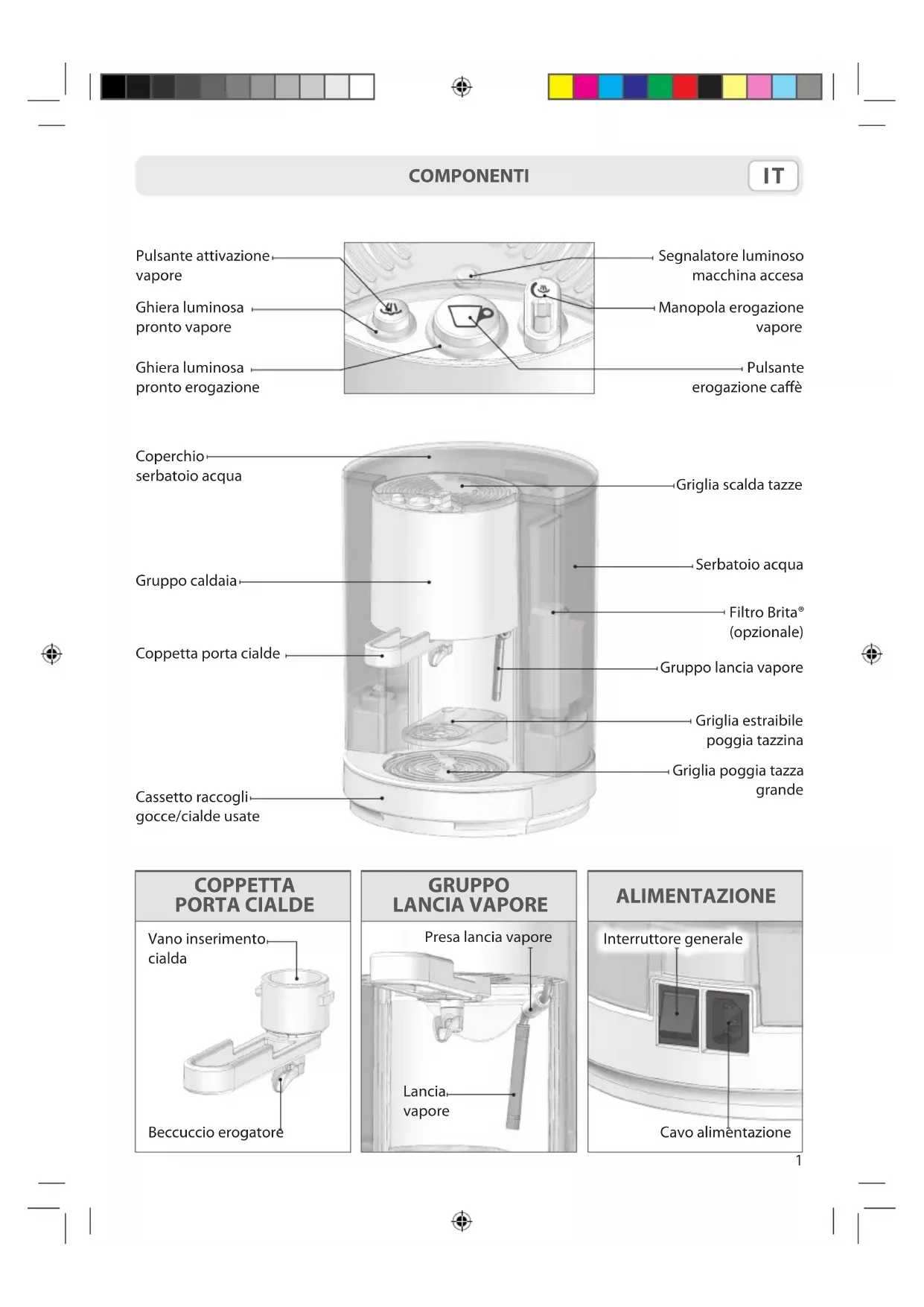 Phale) migliorara la qualita dell'acqua e allunga la durata dell'apparecchio. Utilizzare il filtro AquaAroma Crema Brita per Lavazza. Per inseire il filtrlo seguire il foglio di istruzioni allegato all'accessorio. Si consiglia di non modificare
