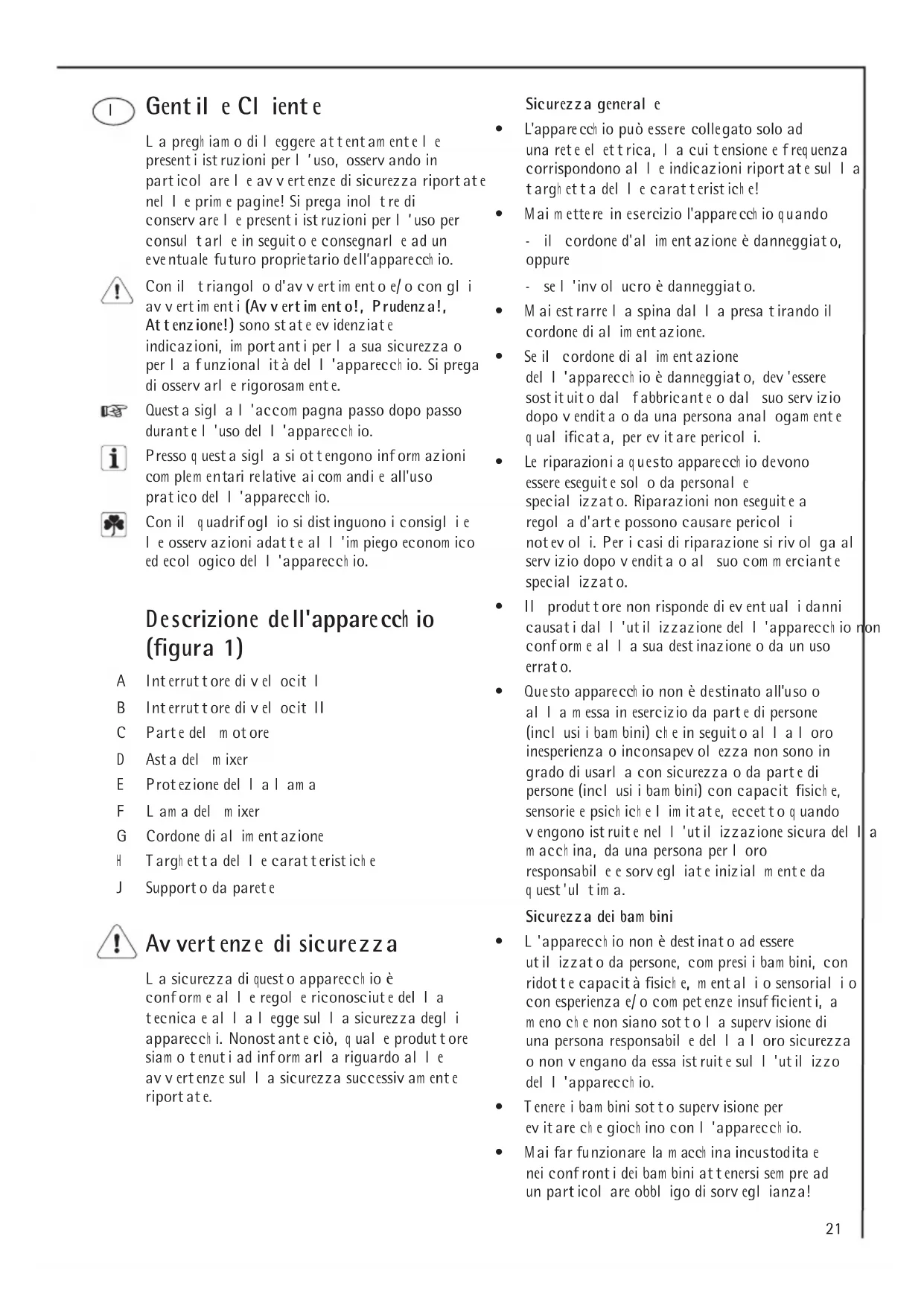 - Quando I 'apparecch io è in funzione m ai mettere I edita nel I evicinanze del I a I am a del mixer. Sussiste il pericol o di ferirsi!