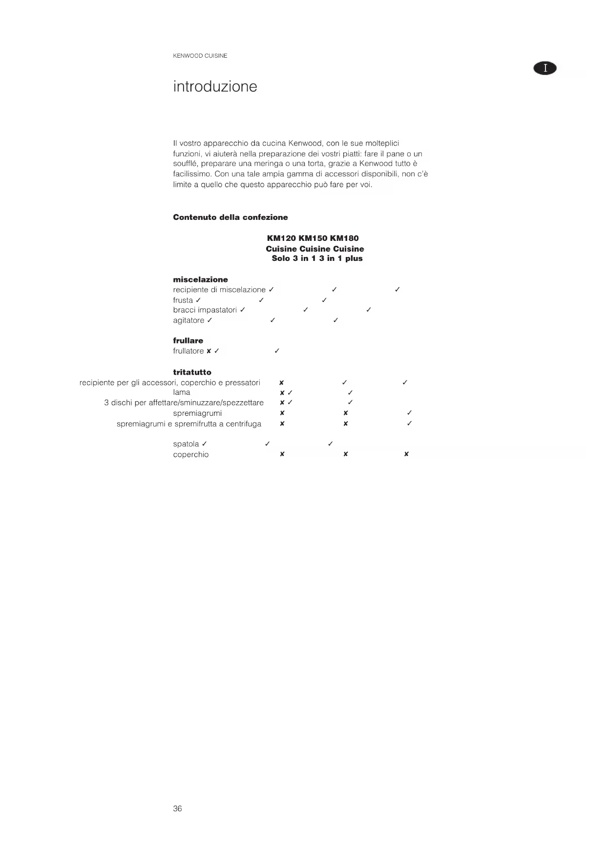 Il vosto appearecchio da cucina Kenwood, con le sue molteplici funzioni, vi aiuterà nella preparazione dei vosri piatti: fare il pane o un soufflé, preparare una meringa o una torta, grazie a Kenwood tutto è facilissimo. Con una tale ampia gamma di accessori disponibili, non c'è limite a quello che questo appearecchio puo fare per voi.