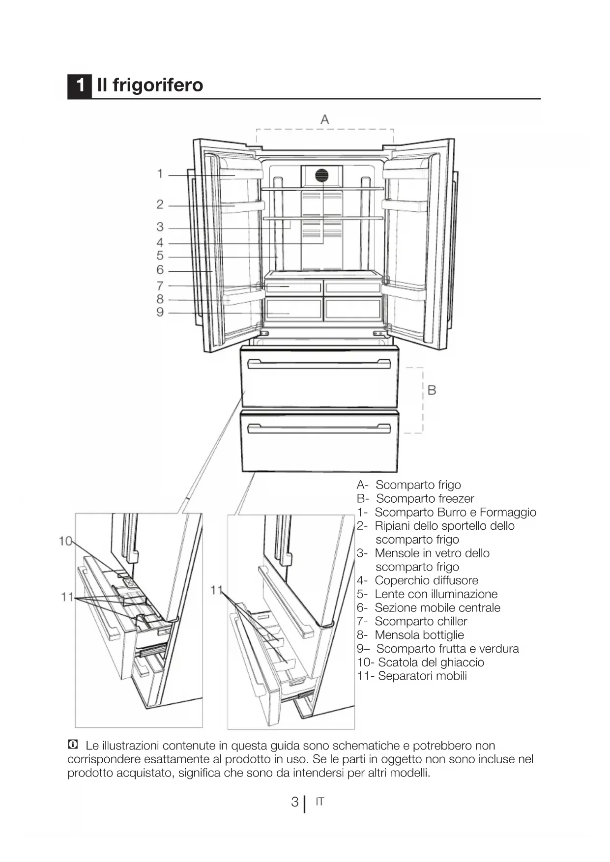 - Maden berører måske skuffens top. Omarranger maden i skuffen.Leggere innanzitutto il manuale di istruzioni. Gentile Cliente, ci auguriamo che l'articolo da Lei scelto, prodotto in moderni stabilimenti e sottoposto ai più severi controlli di qualità, risponda interamente alle Sue esigenze. A tal fine, La invitiamo a leggere attentamente il manuale di istruzioni del prodotto prima di procedere al suo utilizzo e di conservarlo per eventuali consultazioni future. Il presente manuale