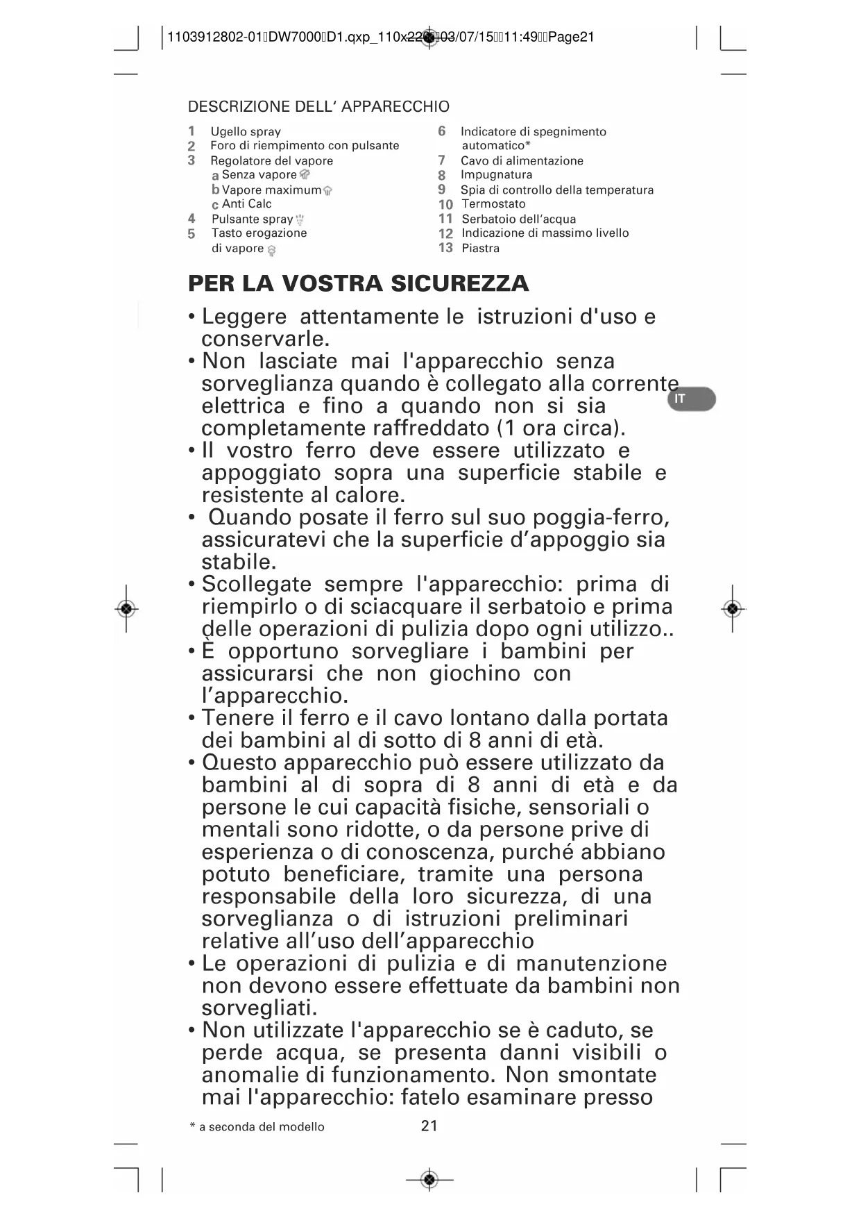CONSERVARE QUESTE ISTRUZIONI PRIMO DELL’USO Attenzione! Togliete le eventuali etichette dalla piastra prima di scaldare il ferro da