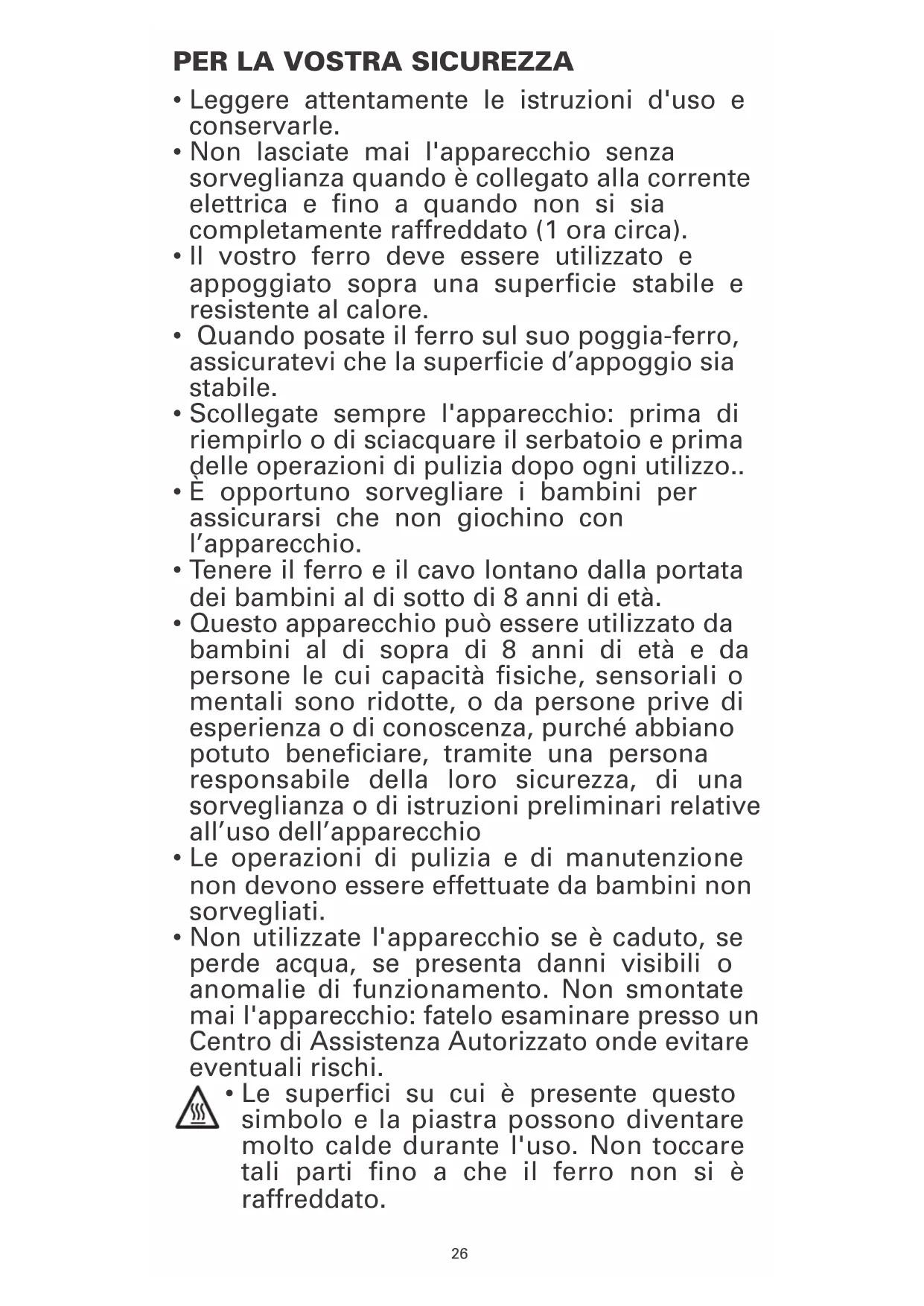 • Il vostro apparecchio emette vapore che può provocare ustioni, soprattutto se