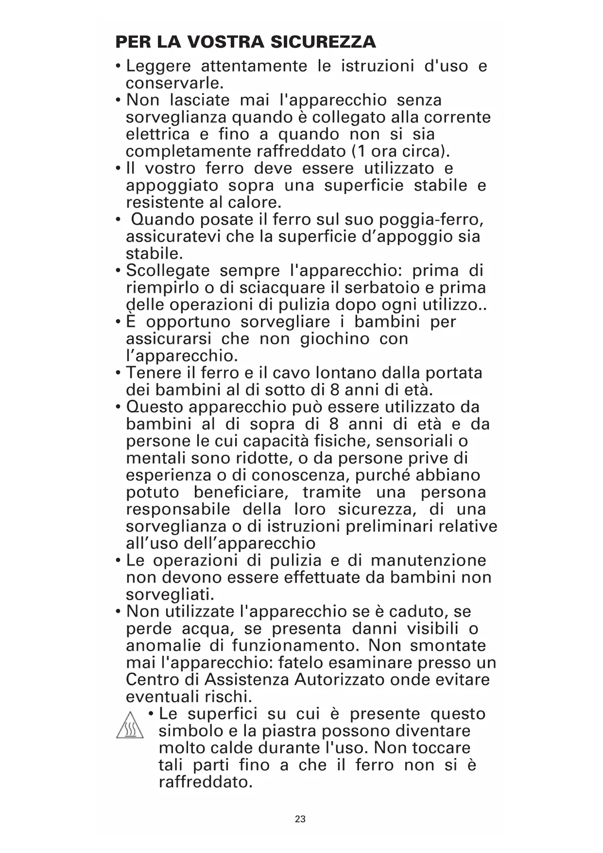 • Il vostro ferro deve essere utilizzato e