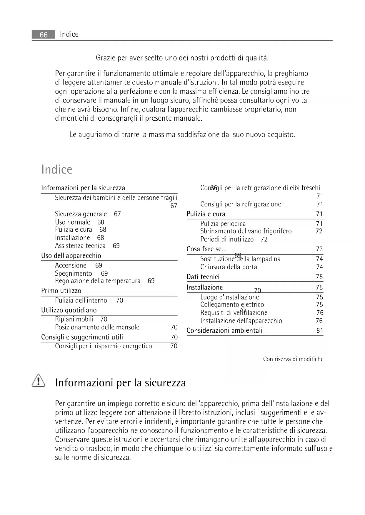 IndicePer la sicurezza delle persone e delle cose osservare le precauzioni indicate nelle presenti