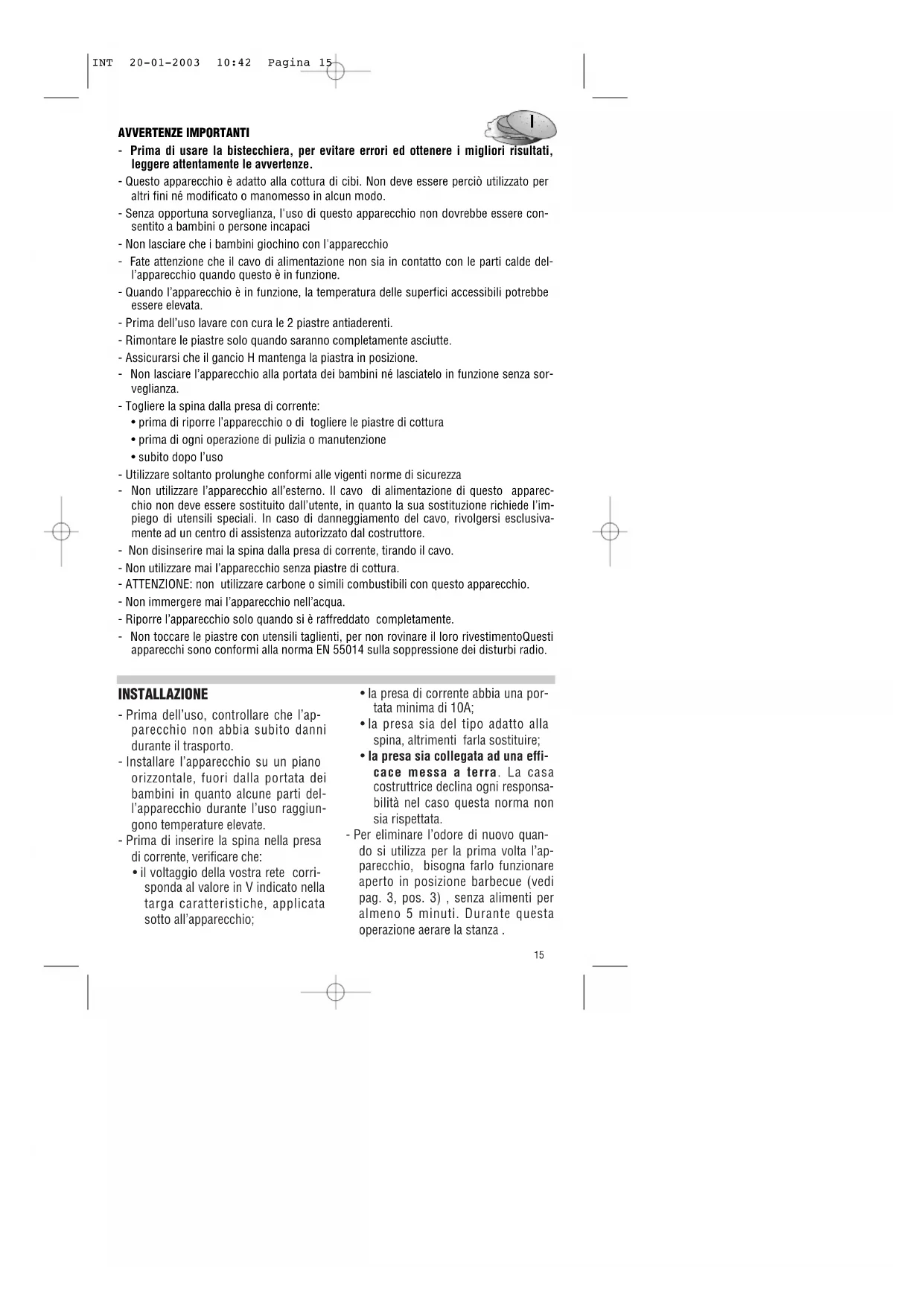 - Prima di usare la bistecchiera, per evitare errorsi edottenere i migliorari risultati, leggere attendamente le avertenze.