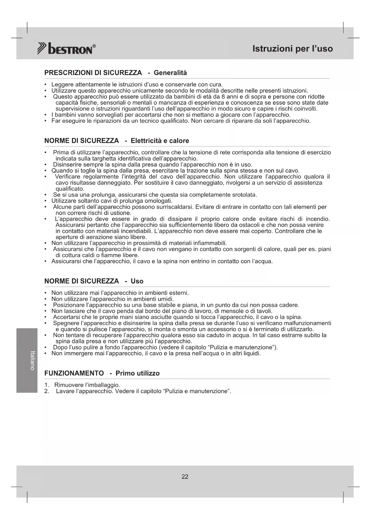 Italiano PRESCRIZIONI DI SICUREZZA - Generalità