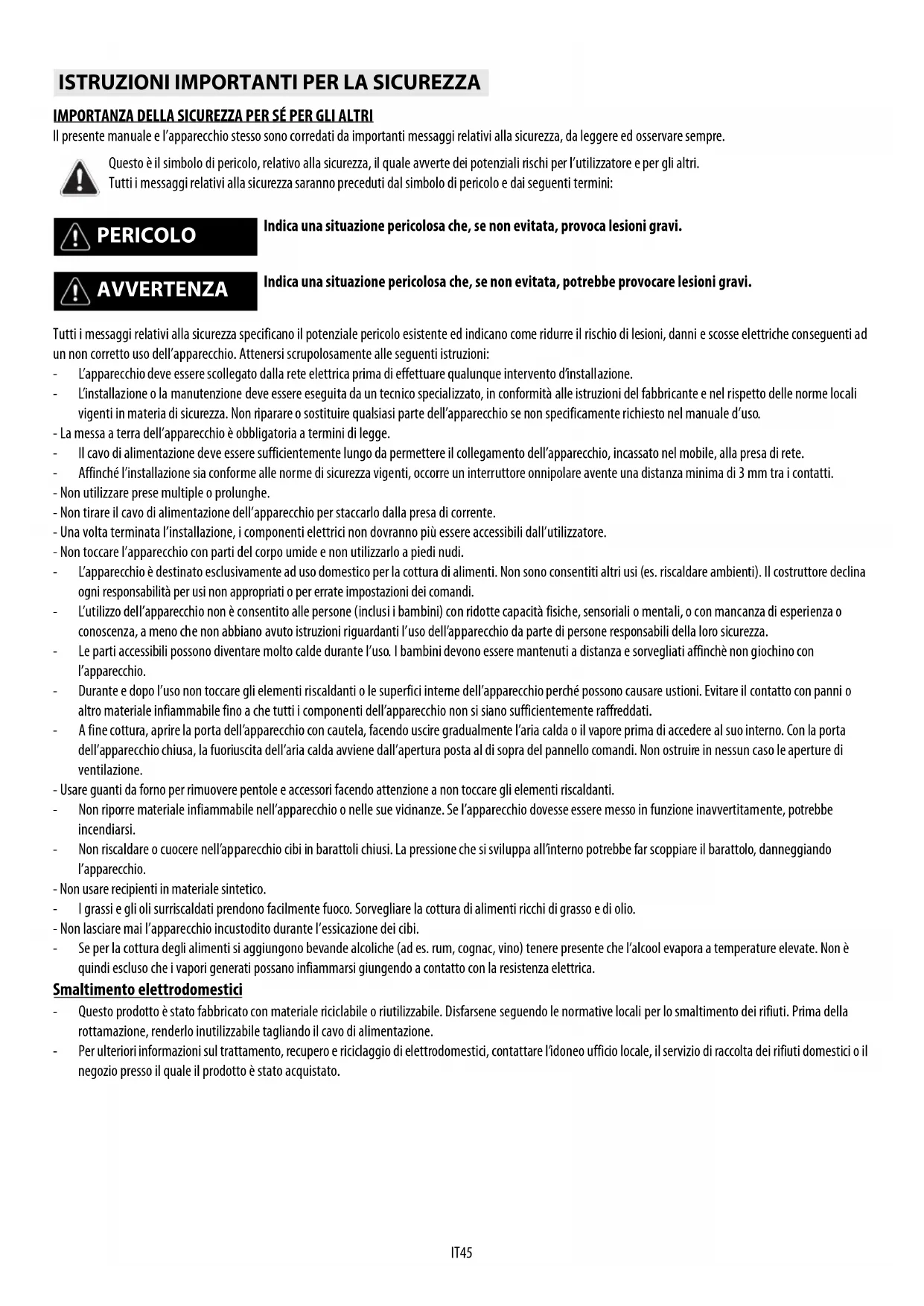 AVVERTENZA Indica una situazione pericolosa che, se non evitata, potrebbe provocare lesioni gravi.IT46