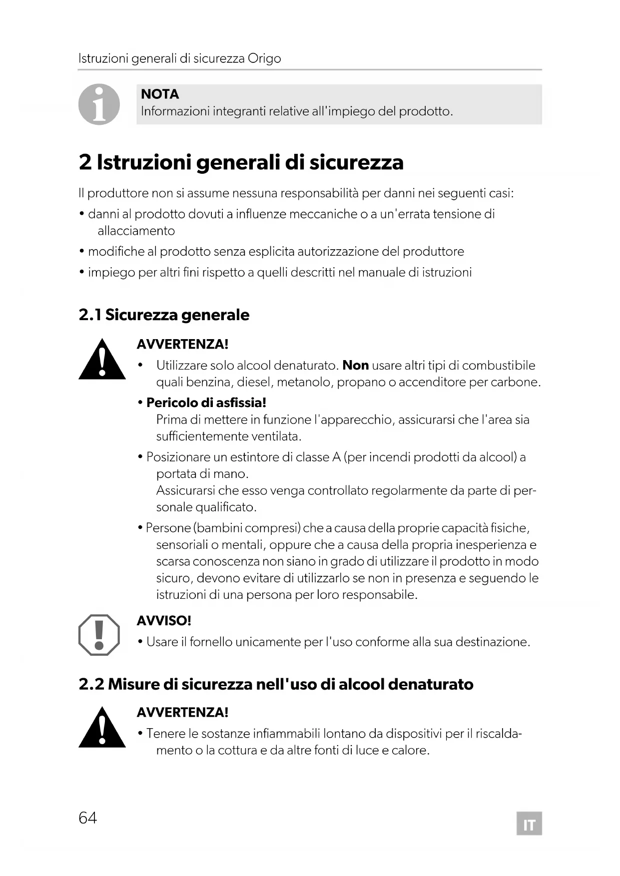 Origo-A100-A200--O-16s.book Seite 64 Freitag, 18. Mai 2018 10:40 10IT Origo Istruzioni generali di sicurezza