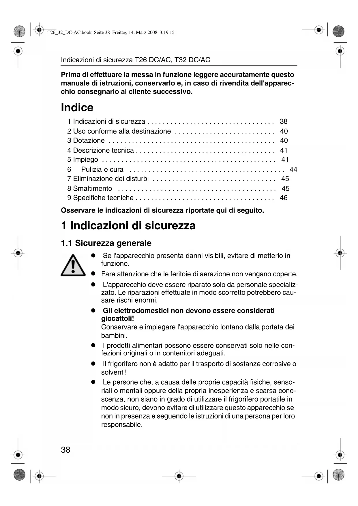 T26_32_DC-AC.book Seite 38 Freitag, 14. März 2008 3:19 15T26 DC/AC, T32 DC/AC Indicazioni di sicurezza