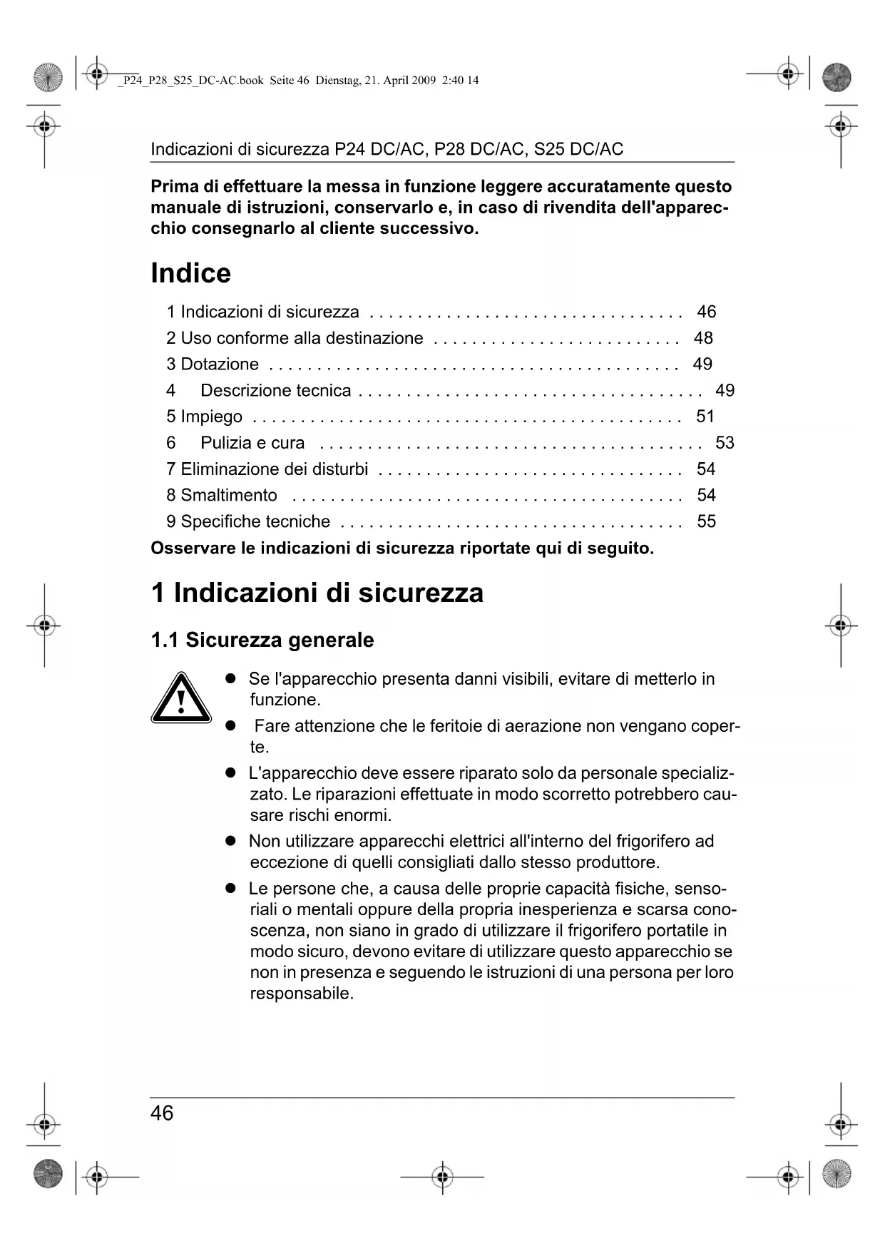 _P24_P28_S25_DC-AC.book Seite 46 Dienstag, 21. April 2009 2:40 14P24 DC/AC, P28 DC/AC, S25 DC/AC Indicazioni di sicurezza