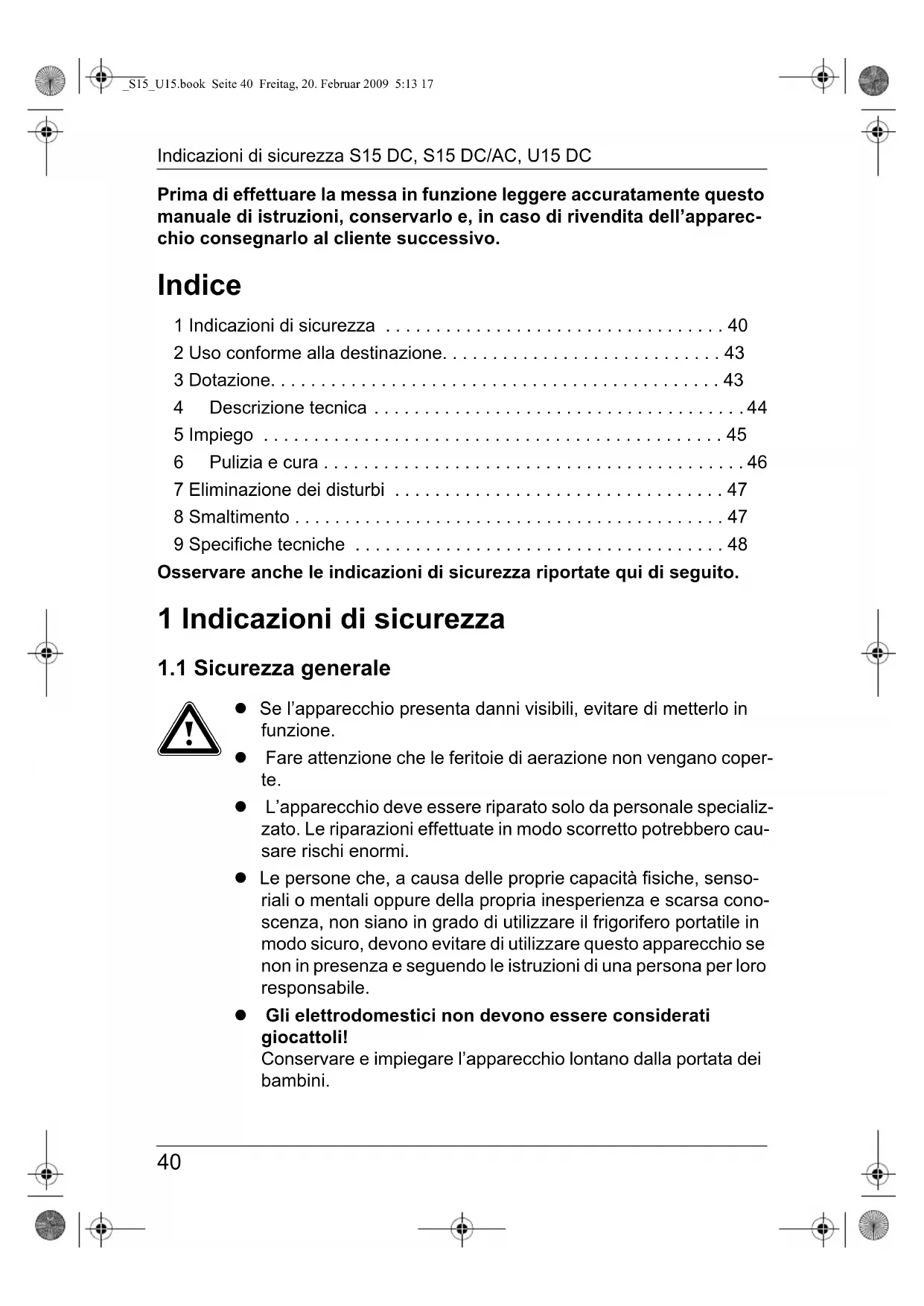 _S15_U15.book Seite 40 Freitag, 20. Februar 2009 5:13 17S15 DC, S15 DC/AC, U15 DC Indicazioni di sicurezza