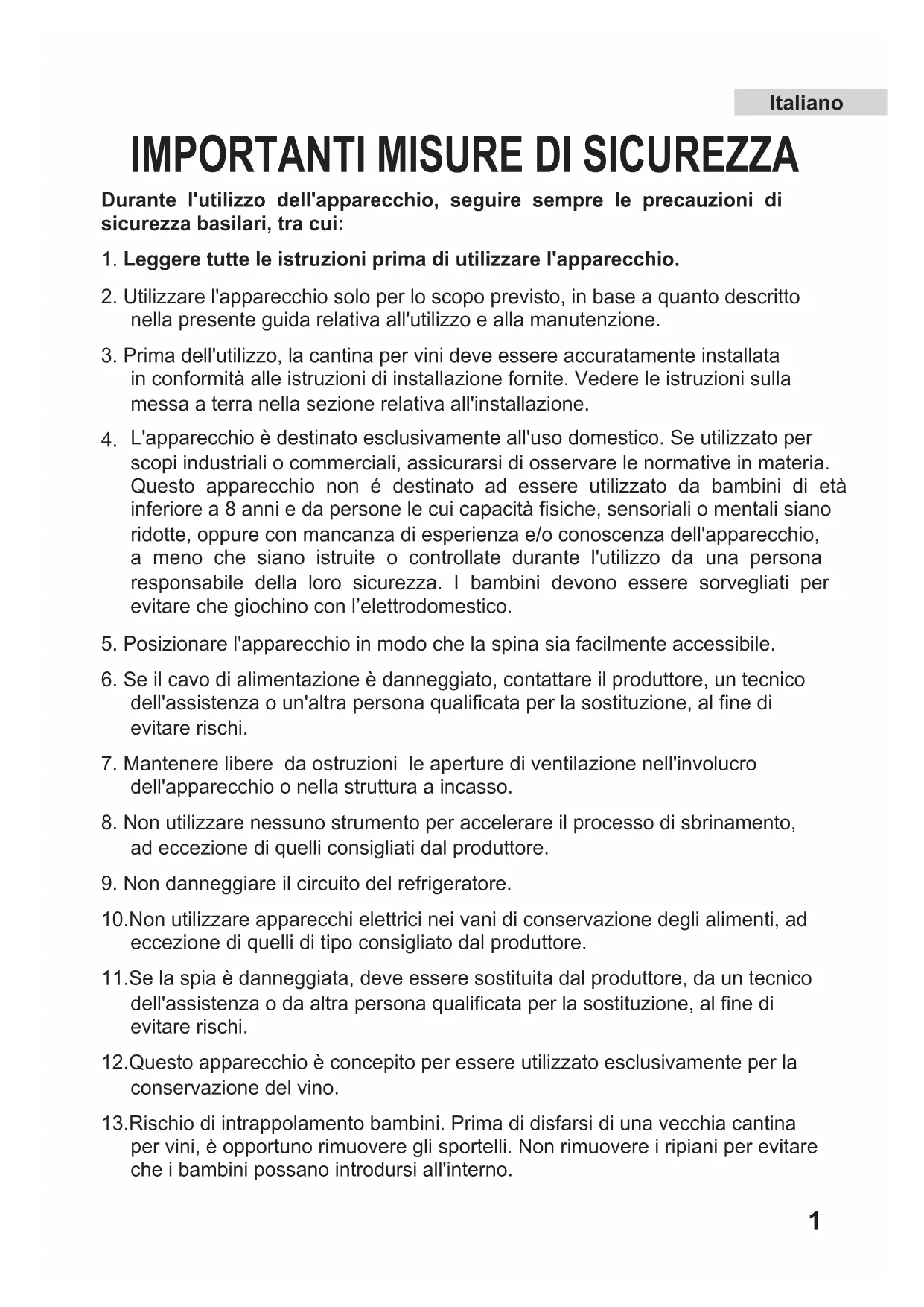 3. Prima dell'utilizzo, la cantina per vini deve essere accuratamente installata