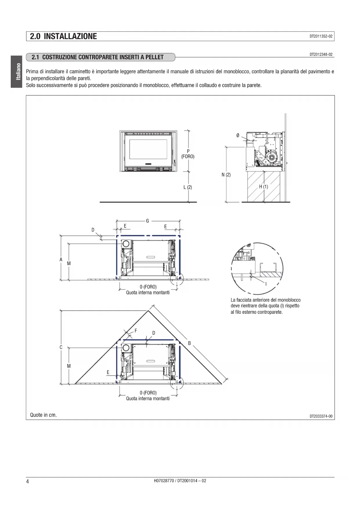 Prima di installare il caminetto è importante leggere attendamente il manuale di istruzioni del monoblocco, controllare la planarità del pavimento e la perpendicularità delle pareti.