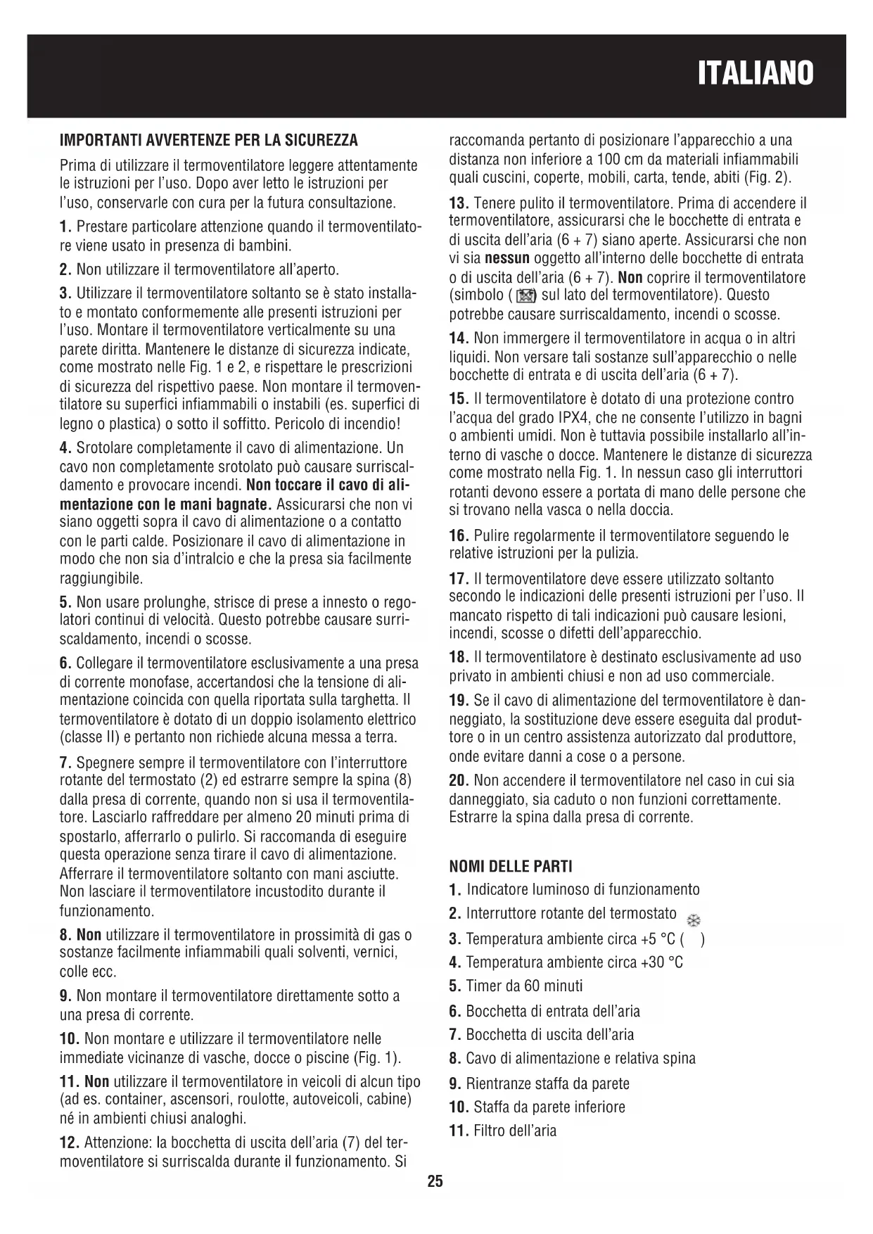 18. Il termoventilatore è destinato esclusivamente ad uso