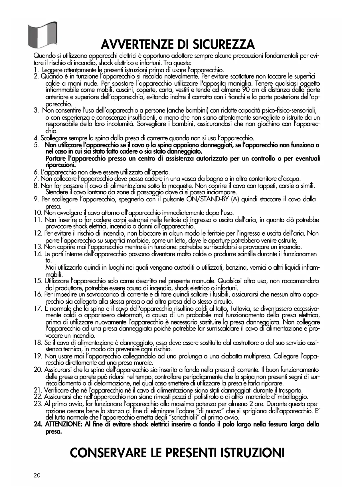 CONSERVARE LE PRESENTI ISTRUZIONI21